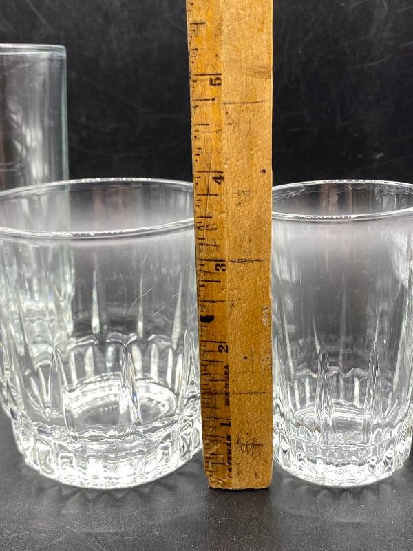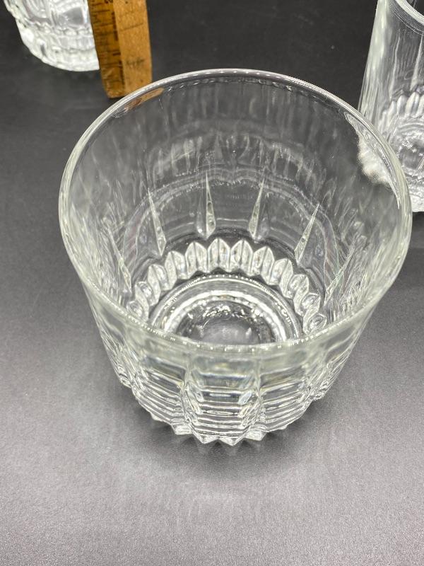 Set of 21 Arcoroc drink glasses. 3 different sizes, 7 of each. All in good condition, no chips. Includes a 5.5" drink glass, a 3.5" rocks glass, and a 3.5" juice glass. Heavy bottoms.