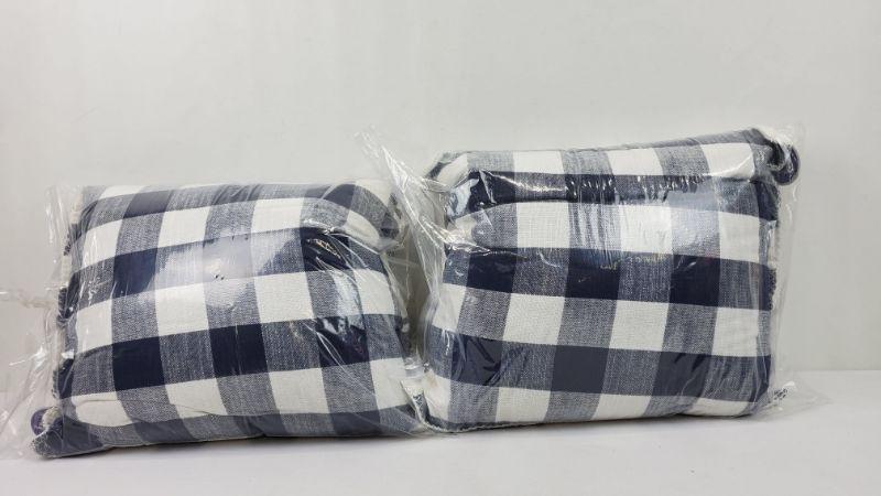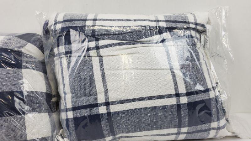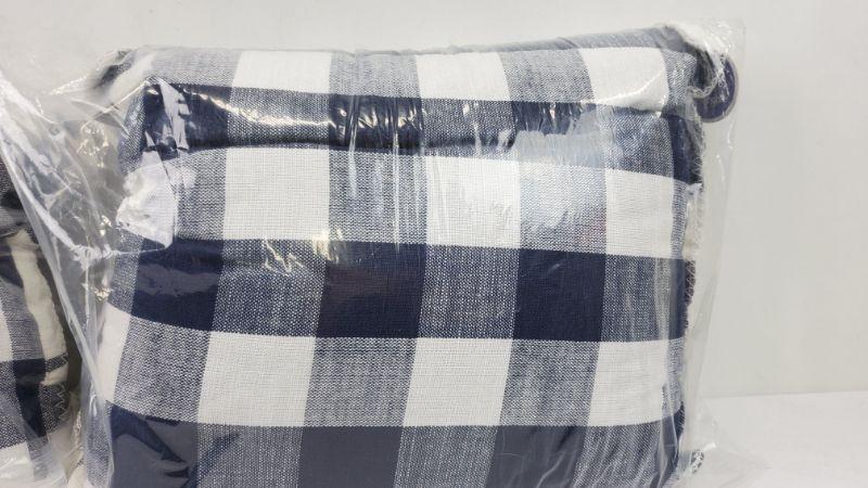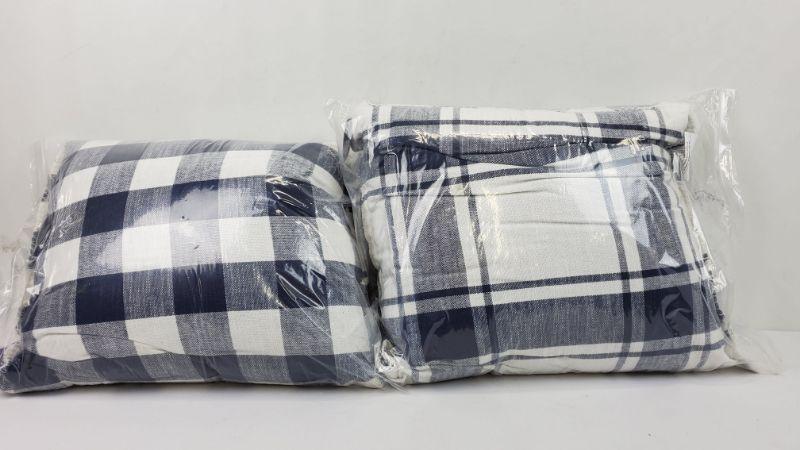 Set of 2-20x20 in Navy Plaid Throw Pillows, Reversible, BH&G - New
