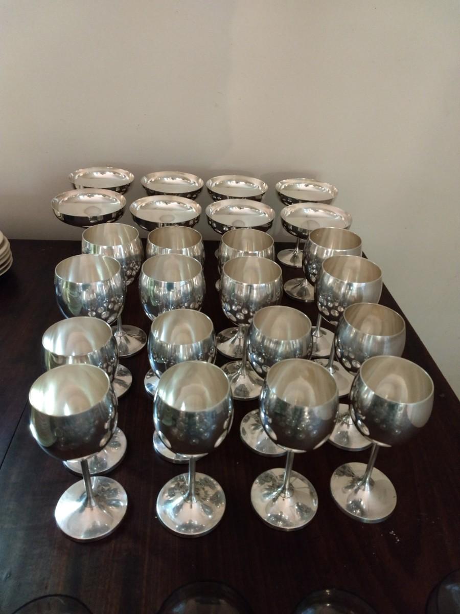 Set of 24 Vintage Plated Spanish Wine and Champagne Goblets