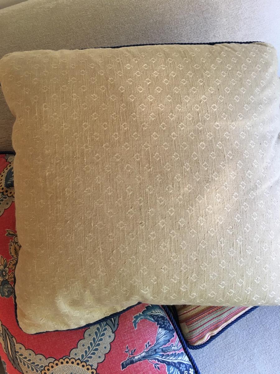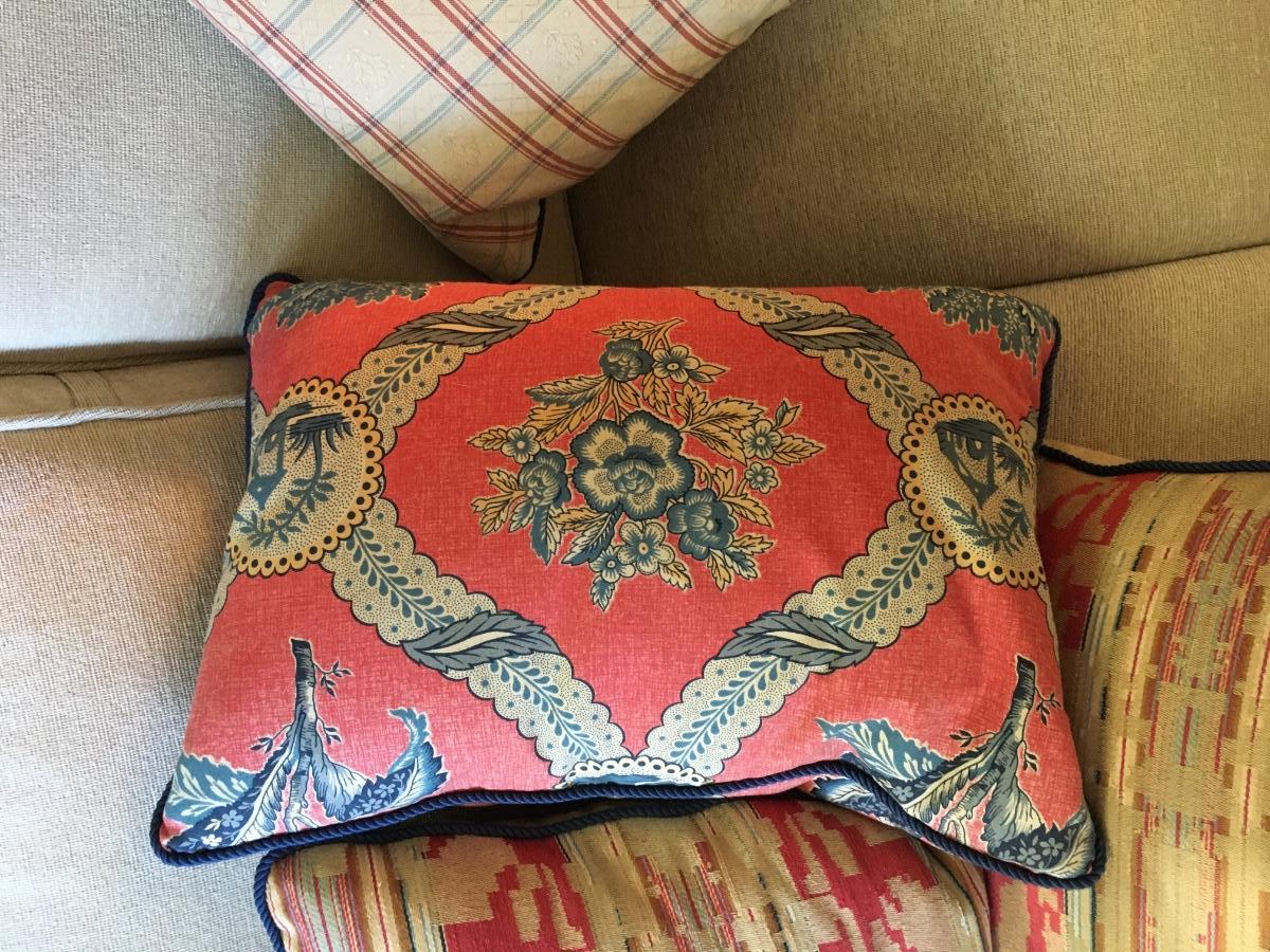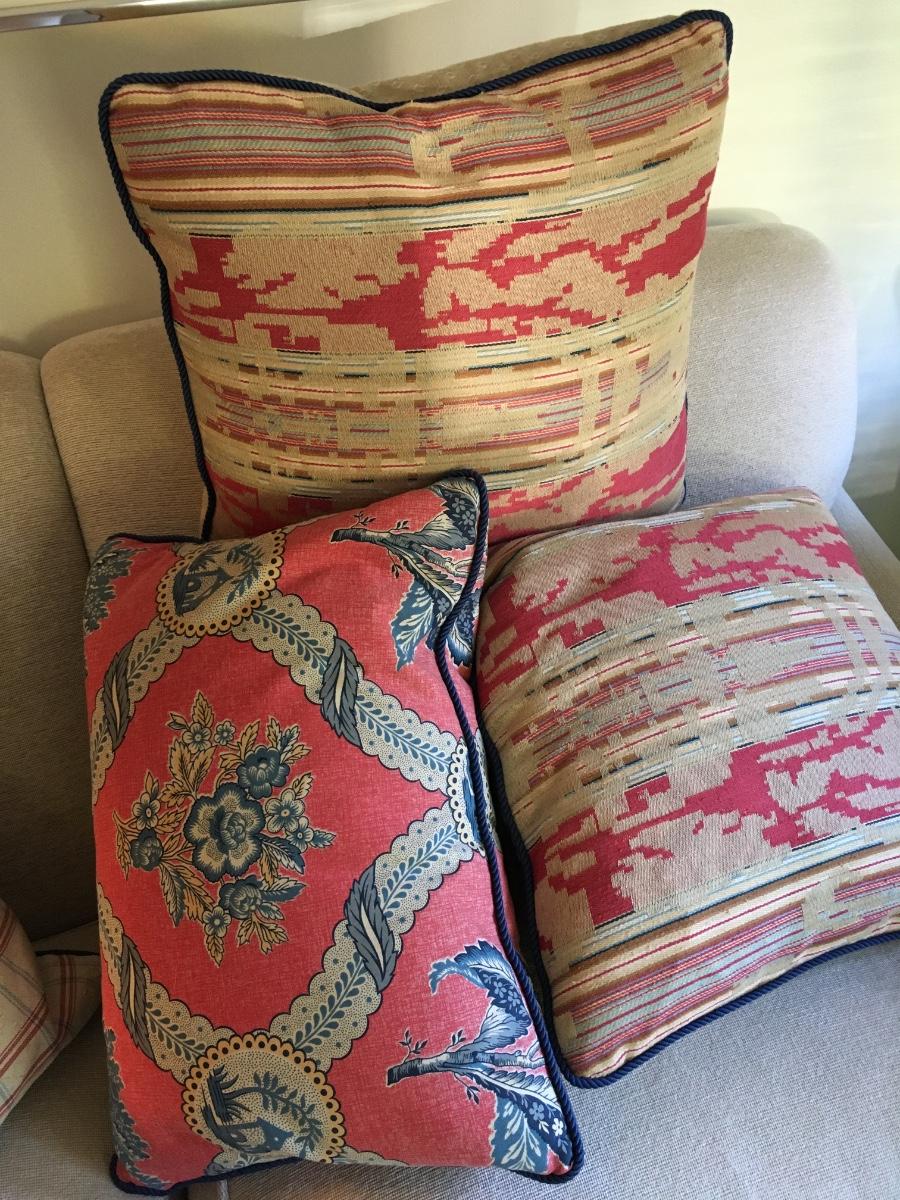 2 square one rectangular. Mismatch patterns adds some interest to any space.. Larger pillows have contrasting fabric.