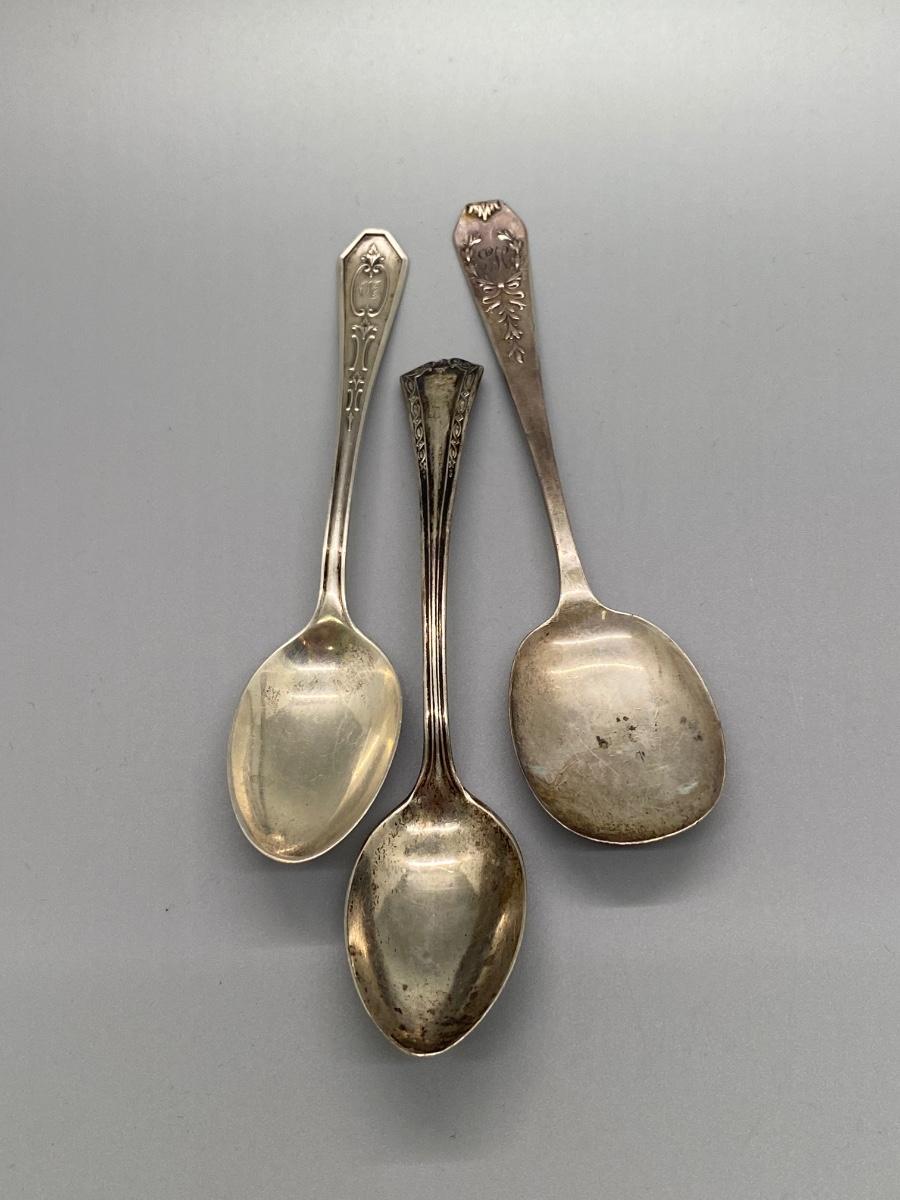 Set of 3 Antique Vintage Monogrammed Sterling Silver Spoons