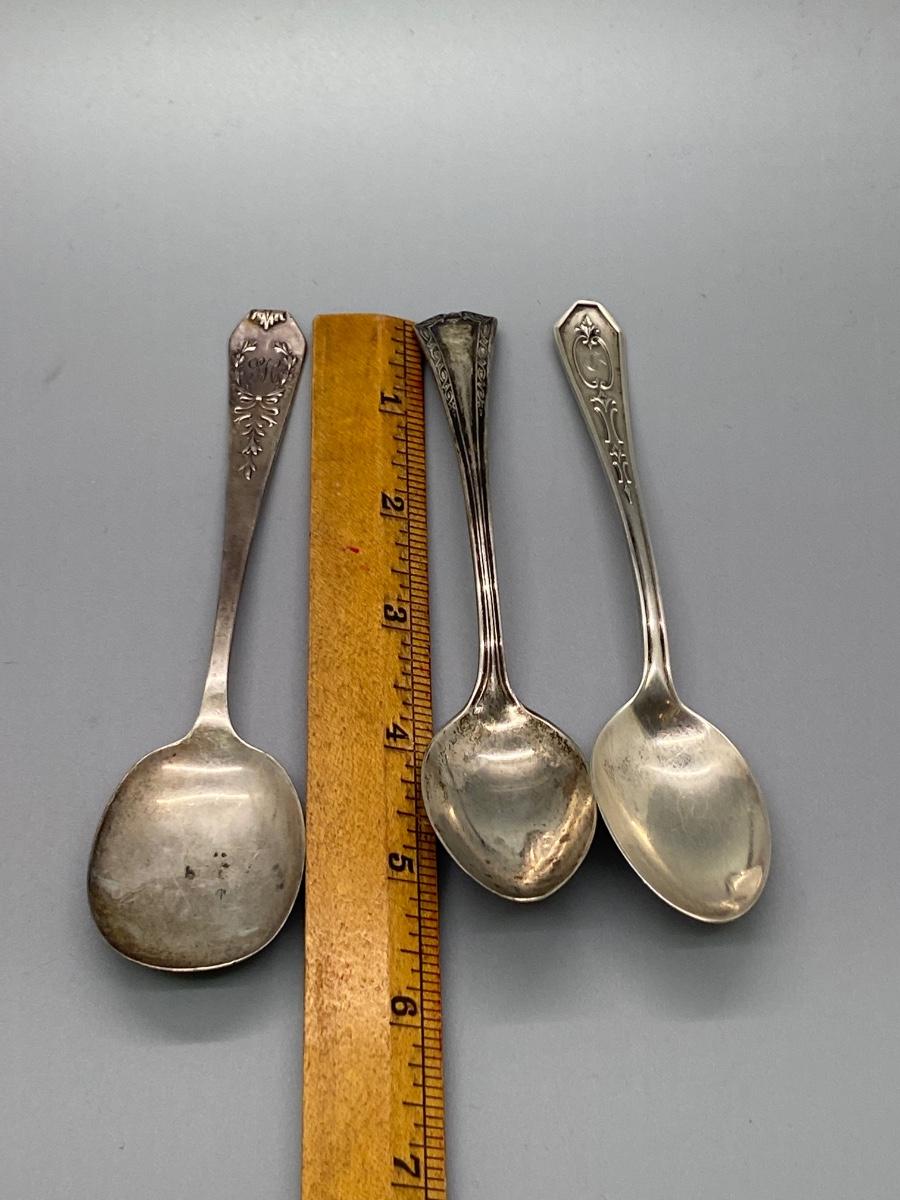 Set of 3 antique sterling silver spoons. Two are monogrammed, one is not. All are marked Sterling on the back.