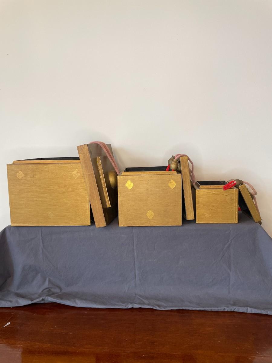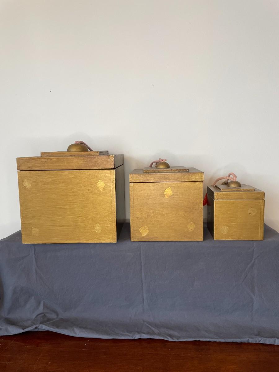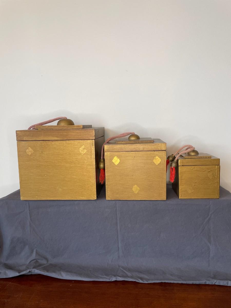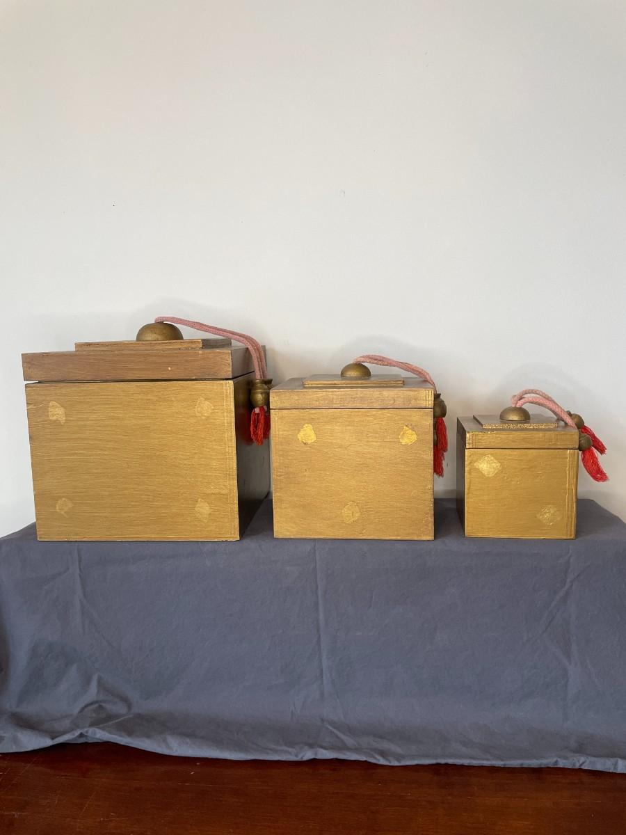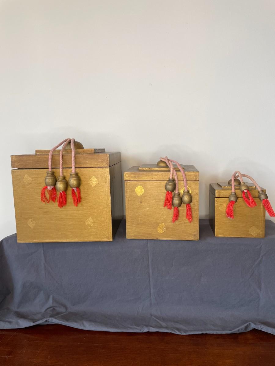 Set of 3 Artisan Crafted Wooden Boxes with Tassels