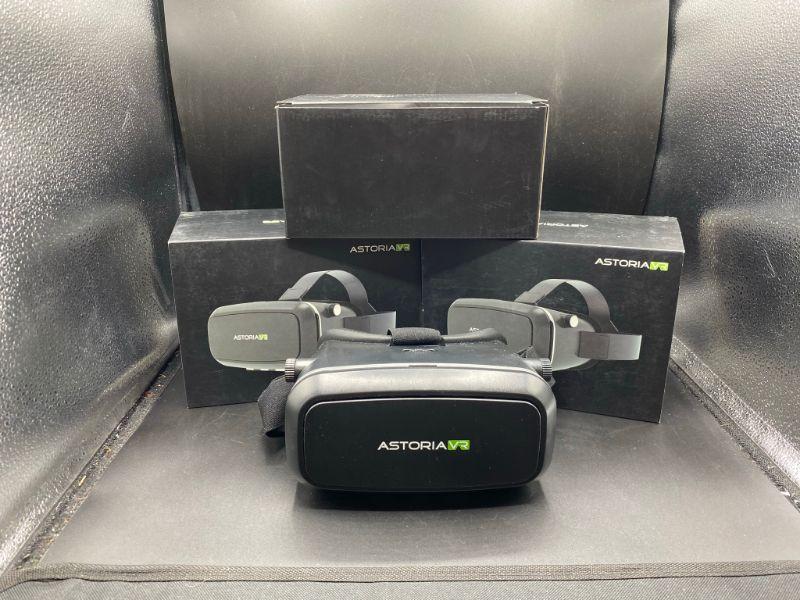 Set of 3 Astoria VR goggles. Made for smartphones. Unused, new in the box. One has been taken out of the plastic.