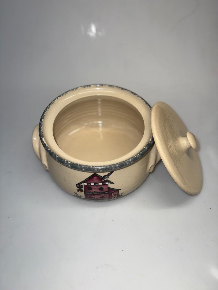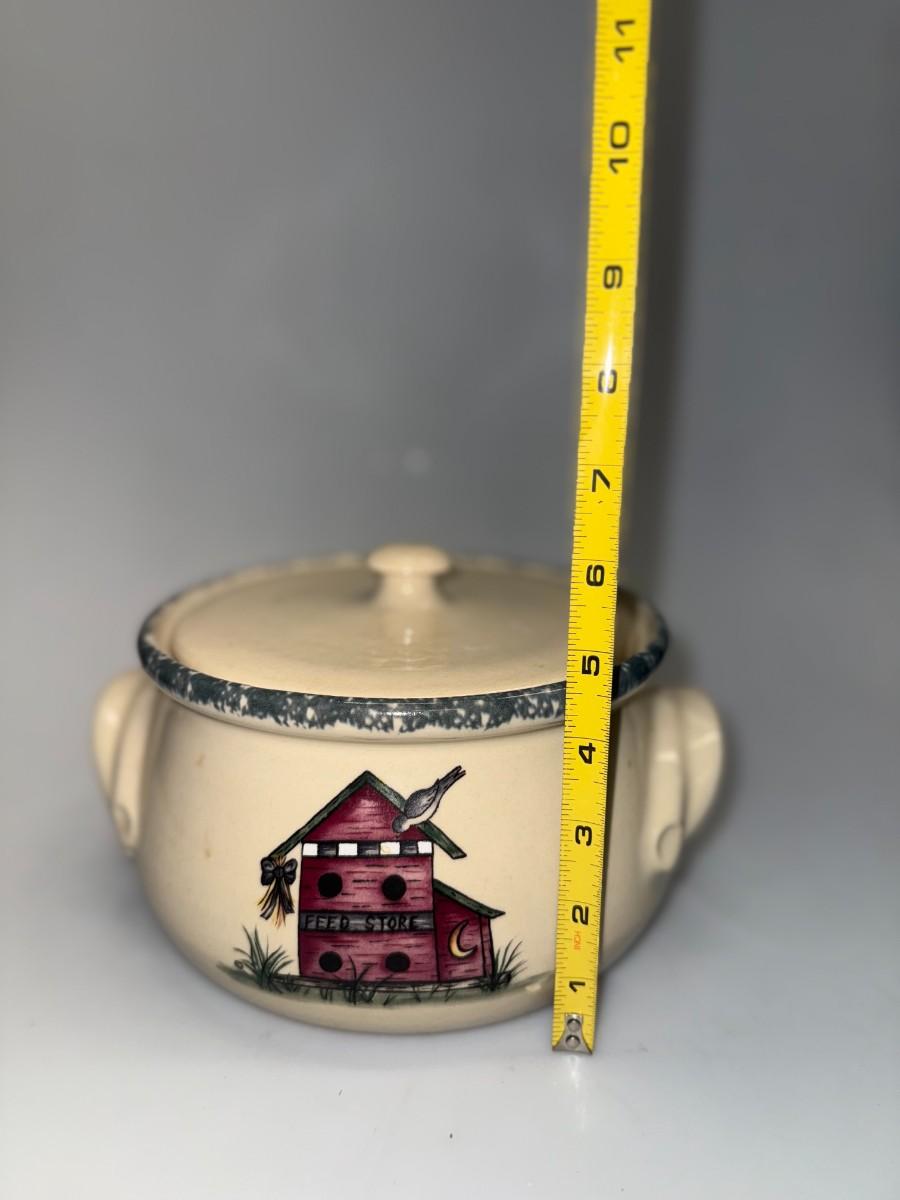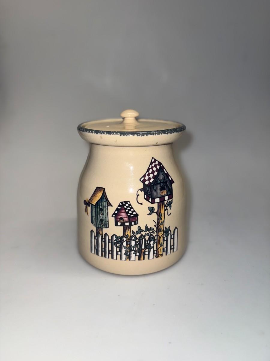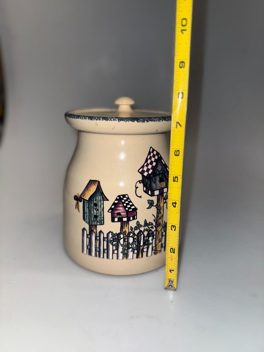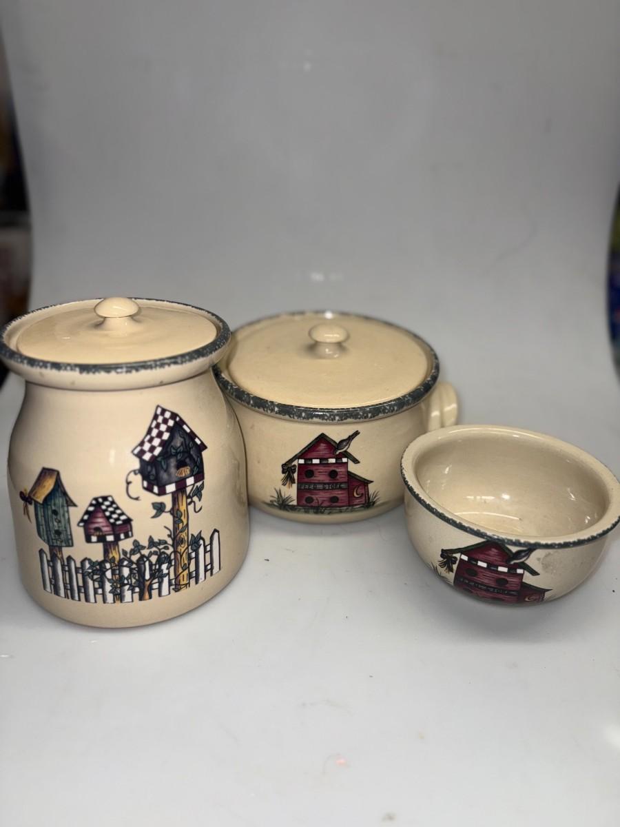 Set of 3 Birdhouse Crock Stoneware Cookie Jar Canister Planter USA