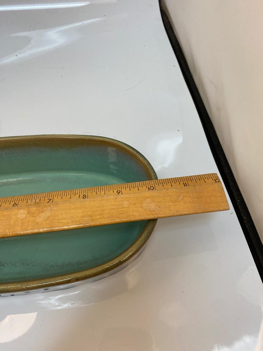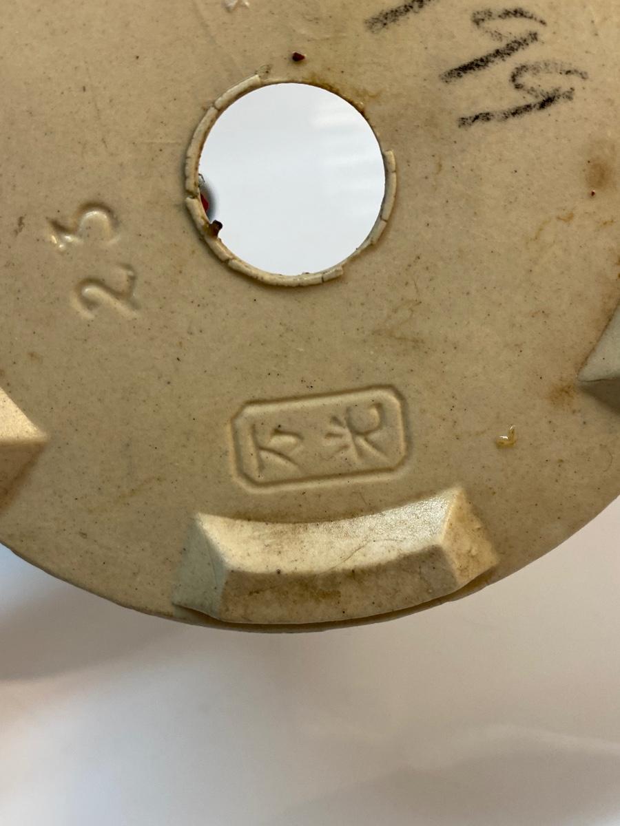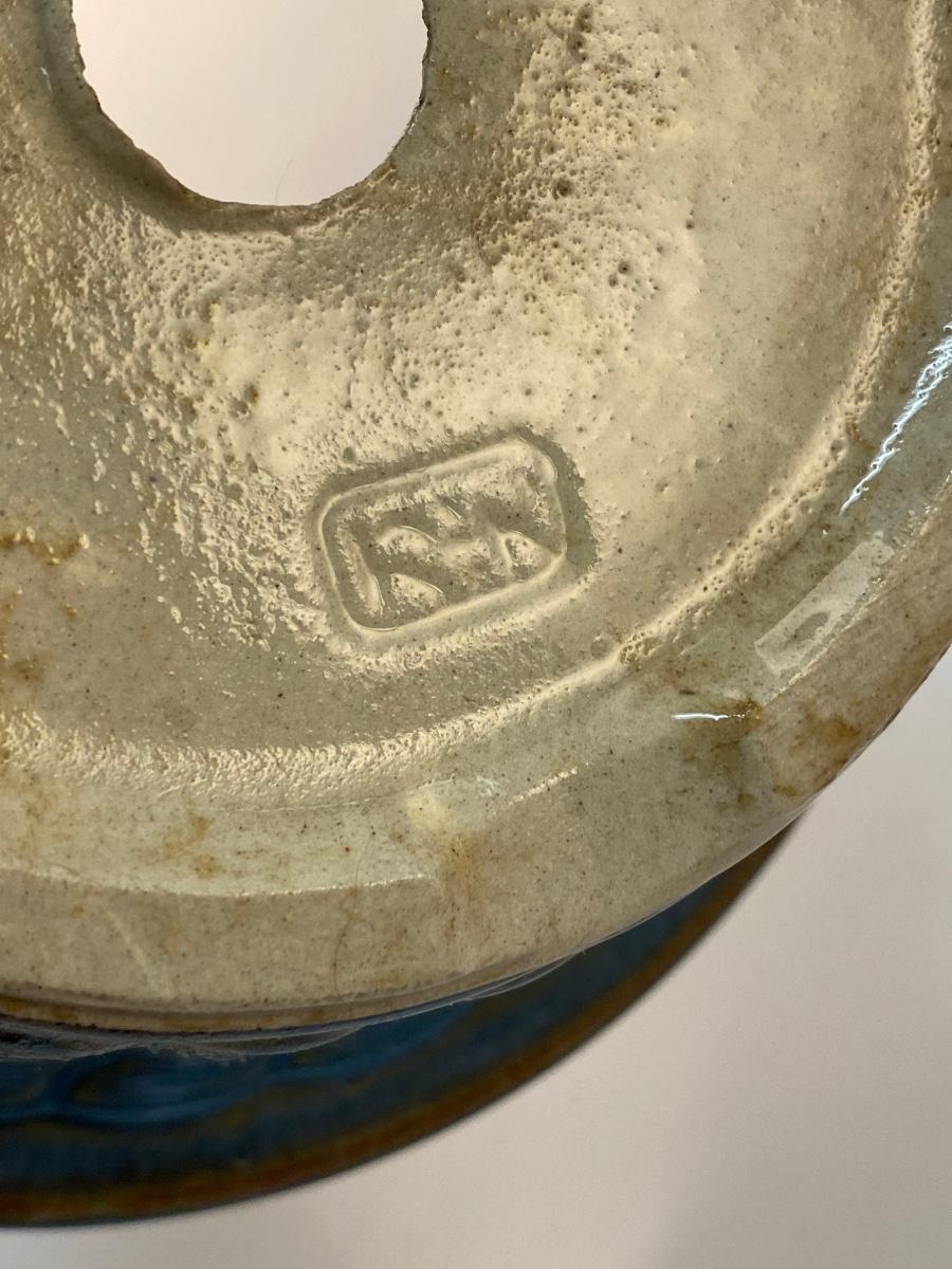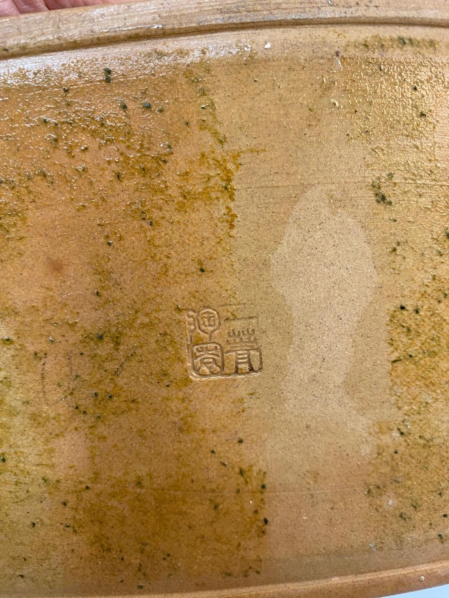 Set of 3 Blue Glaze Planter Pots Stamped. The two round look to be made by same artist. The oblong one has what looks like an Asian stamp. All are in good condition no chips. One round has water deposits around it, may come clean with a soak in vinegar, but not sure.