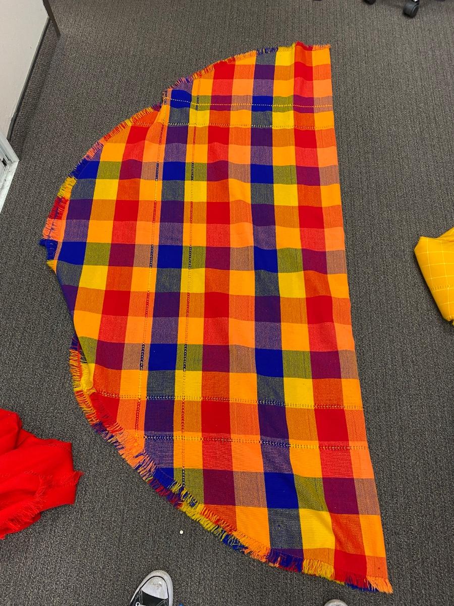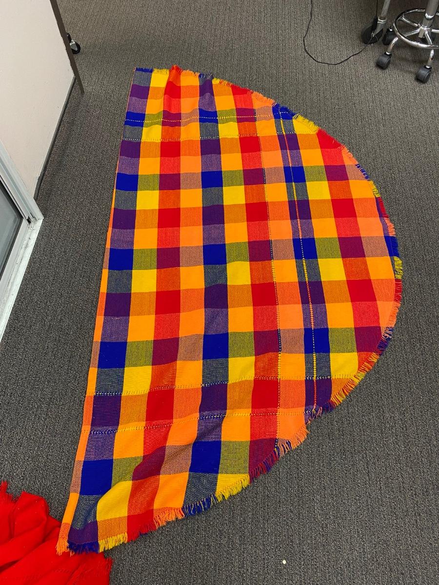 Set of 3 Brightly Colored Round Tablecloths Yellow Red Plaid