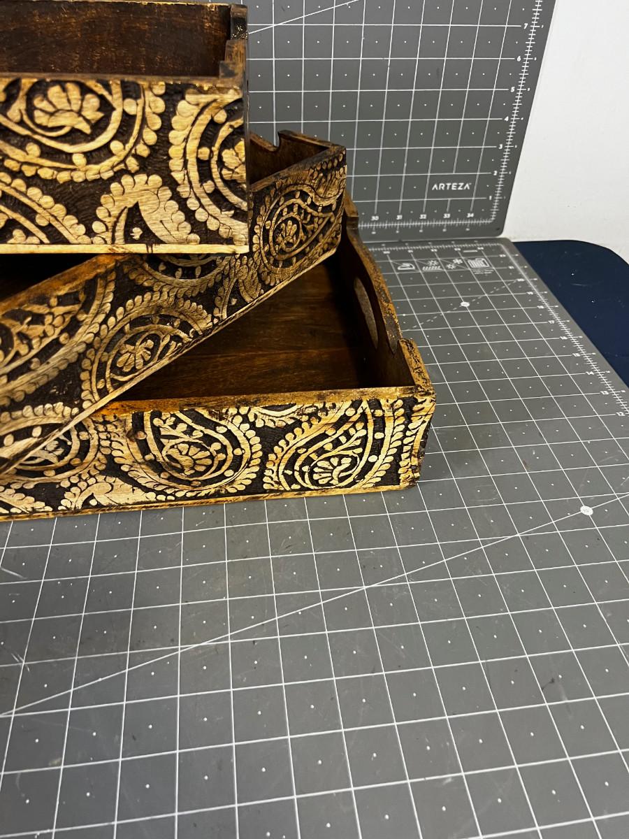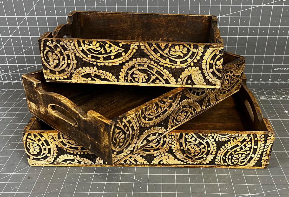 Set of 3 Carved Nesting Trays, Made in India