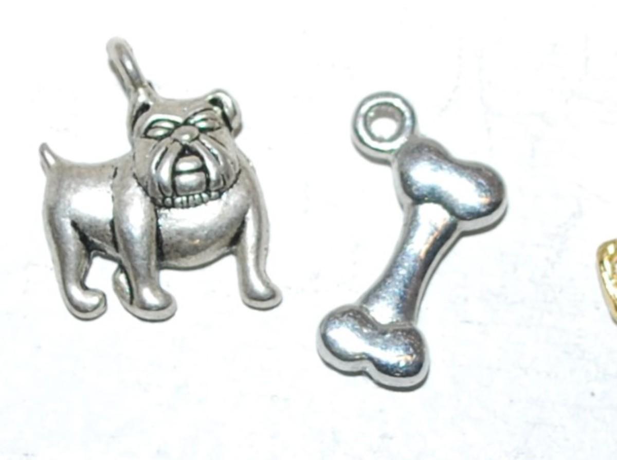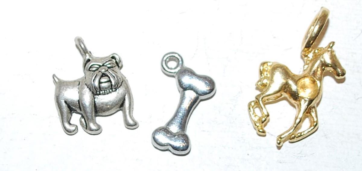 Set of 3 Charms ( ½") -- Silver Tone Bulldog with Bone & Bright Gold Tone Horse