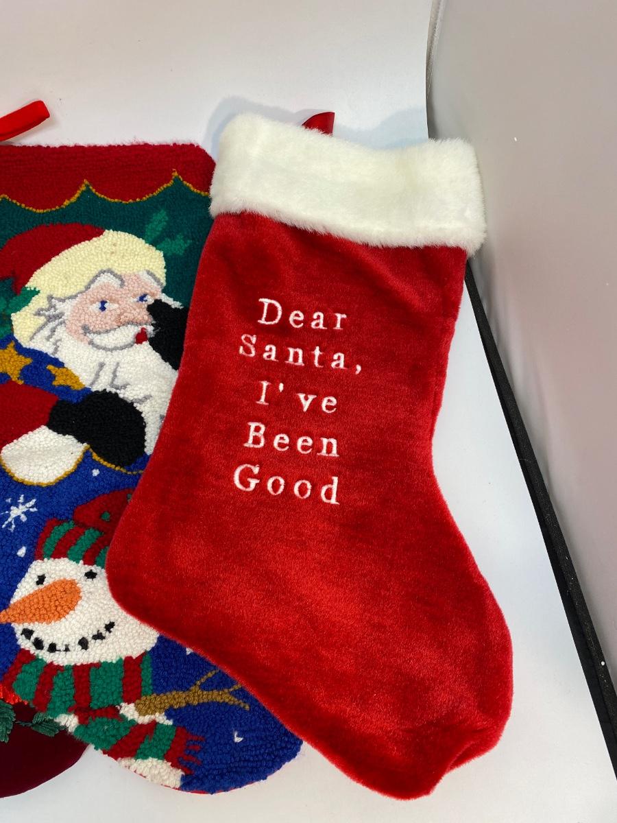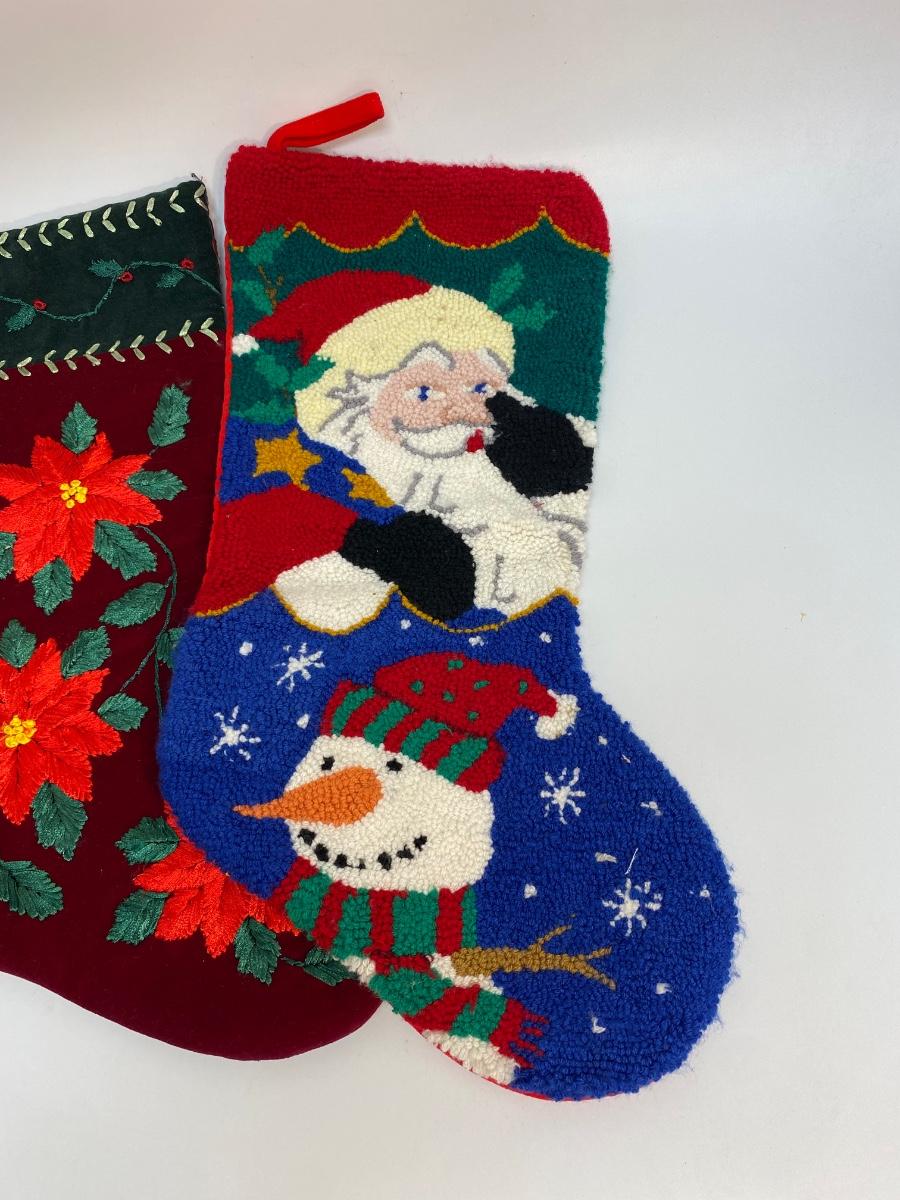 Set of 3 Christmas Holiday Stockings. Each one different. In good condition.