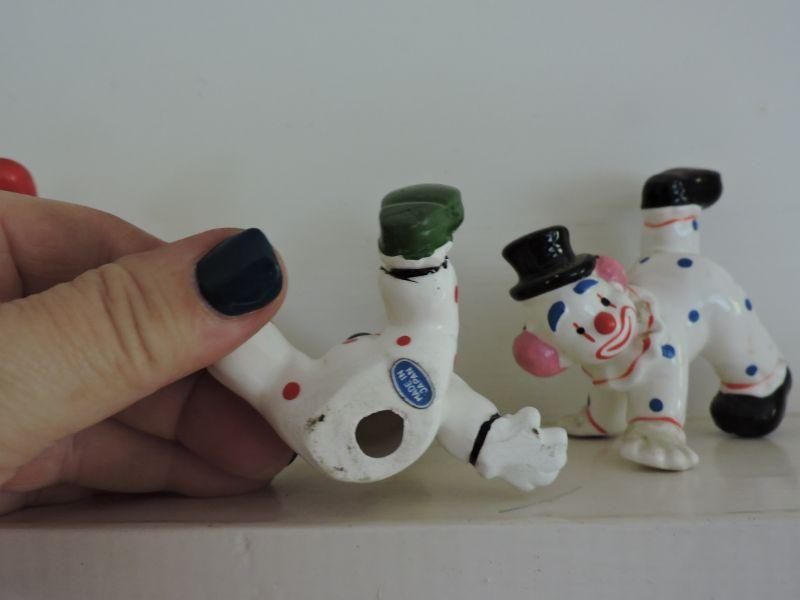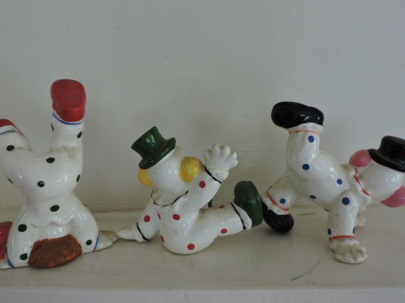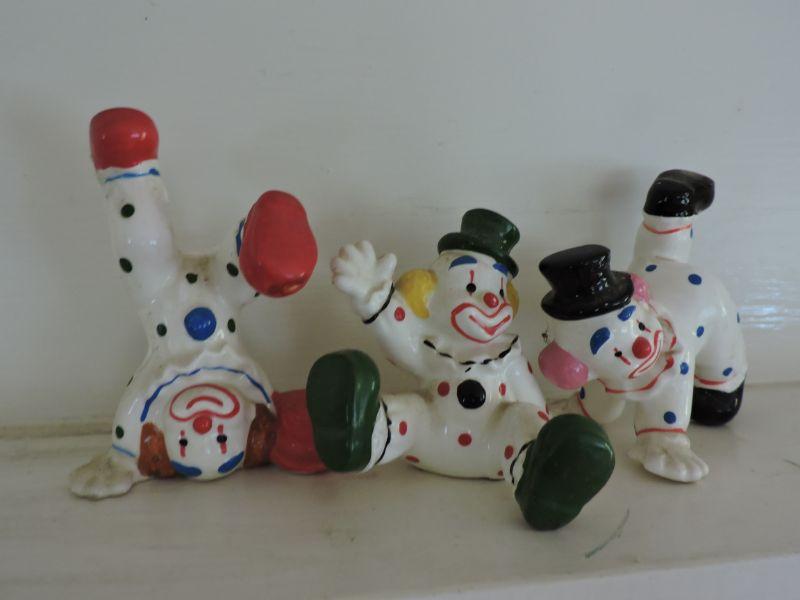 Vintage ceramic clowns. No chips. **Please read Terms and Conditions before placing a bid. Pick up is Saturday, November 30 from 9am to 3pm in Bridgeton, NJ. All sales are final. All sales are as is, where is. Please review all photos. Any props included in photos are not included in listing. All measurements are approximate.