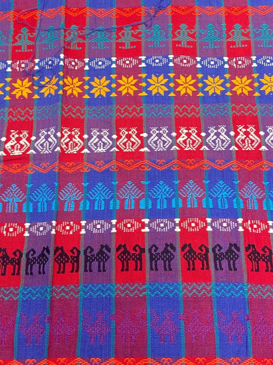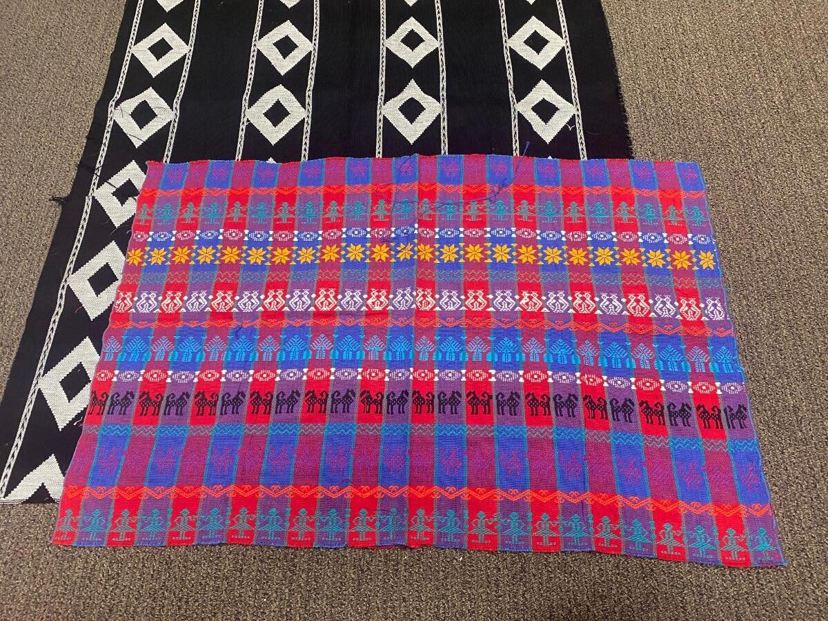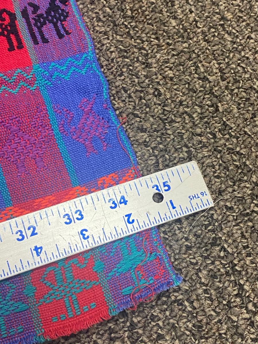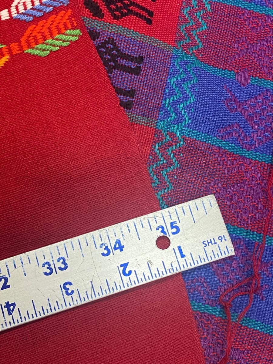 Set of 3 colorful embroidered textile fabric squares. Southwestern design styles, possibly from Mexico. All are in good condition. Unfinished edges. Under 3' size, see photos for measurements.