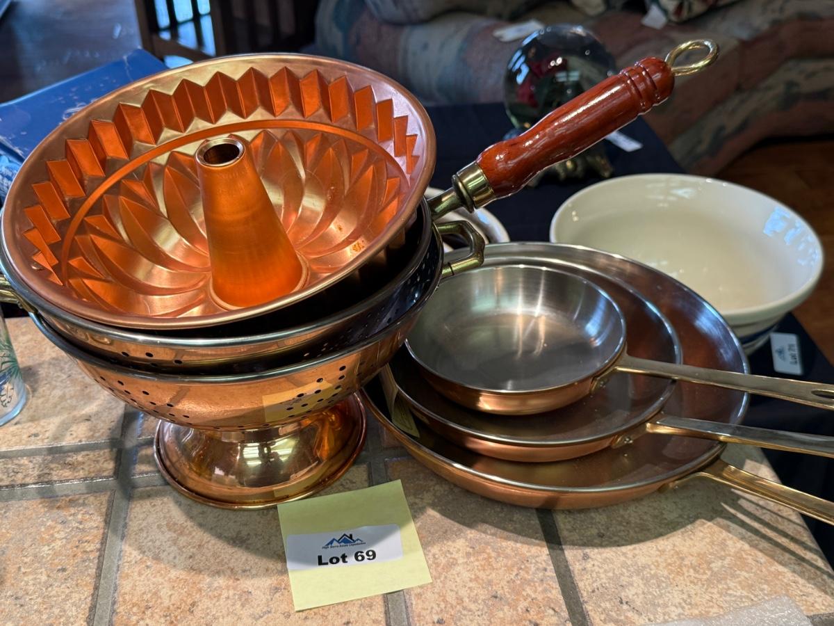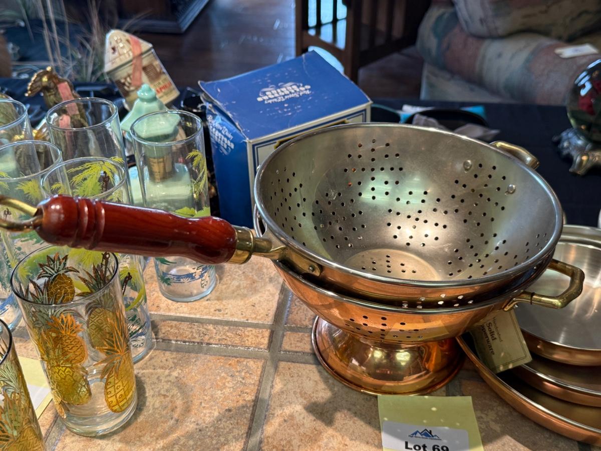 Set of 3 Copper Pans/2 Caulenders & Bundt Pan