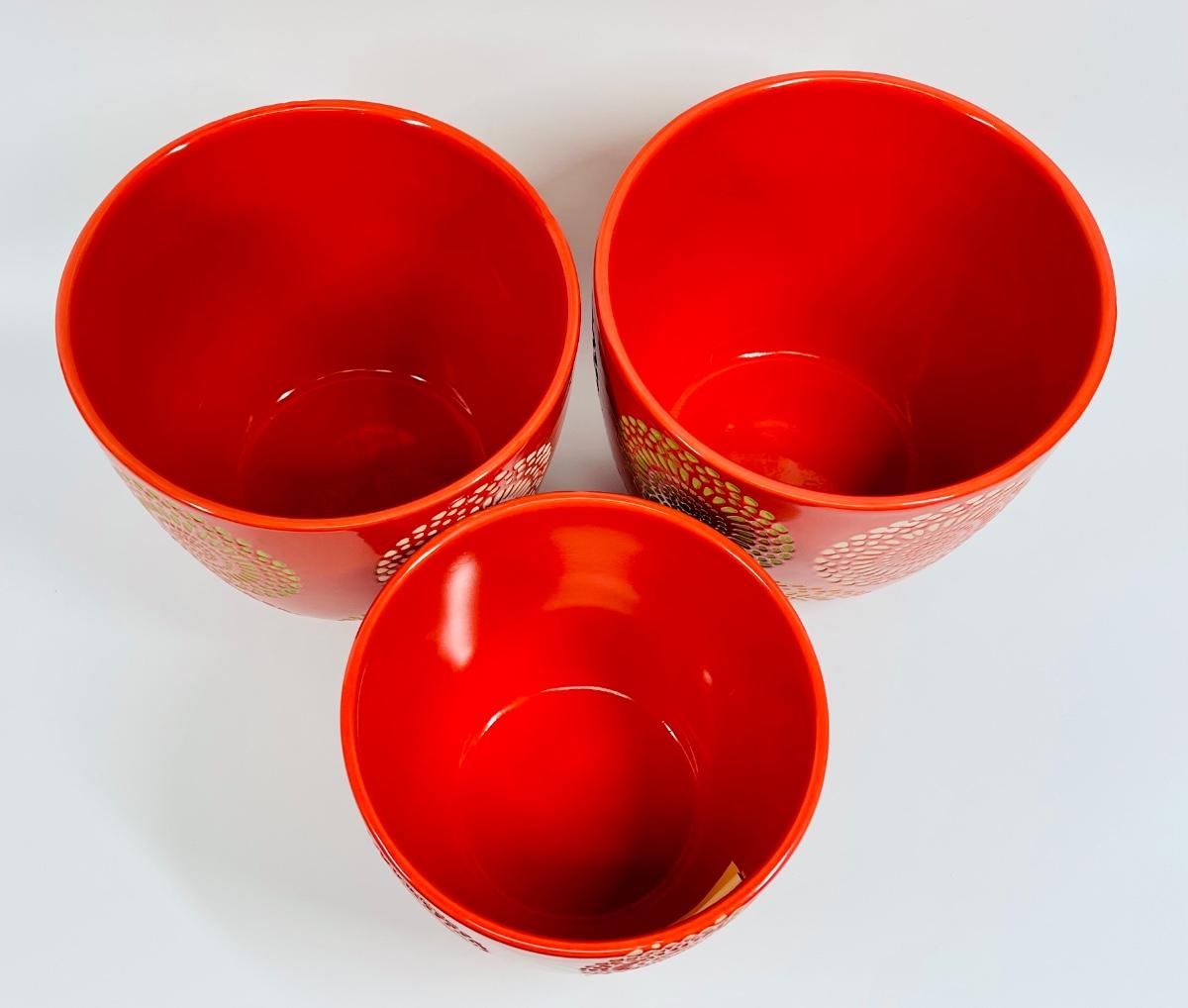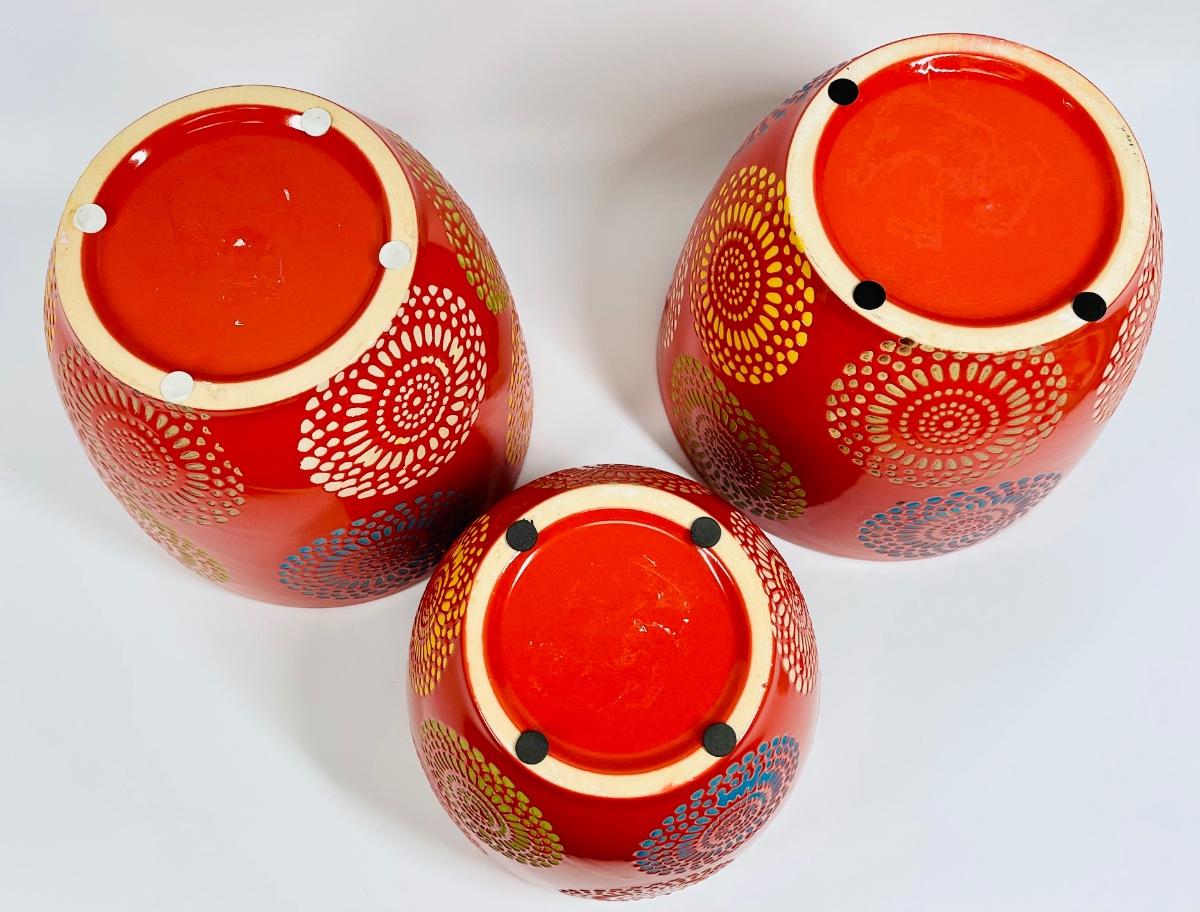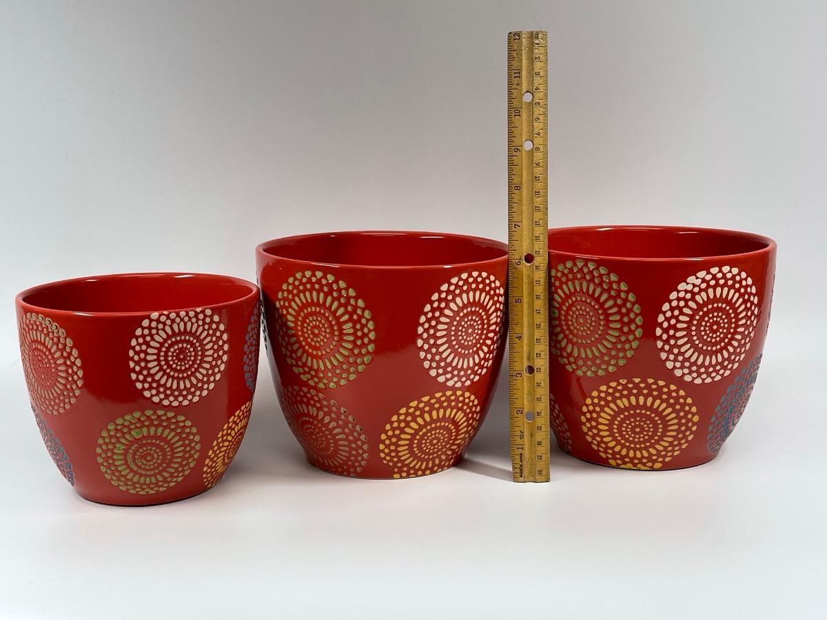 Lot of Coral Colored Ceramic Plant Pots with Radiating Circle Designs