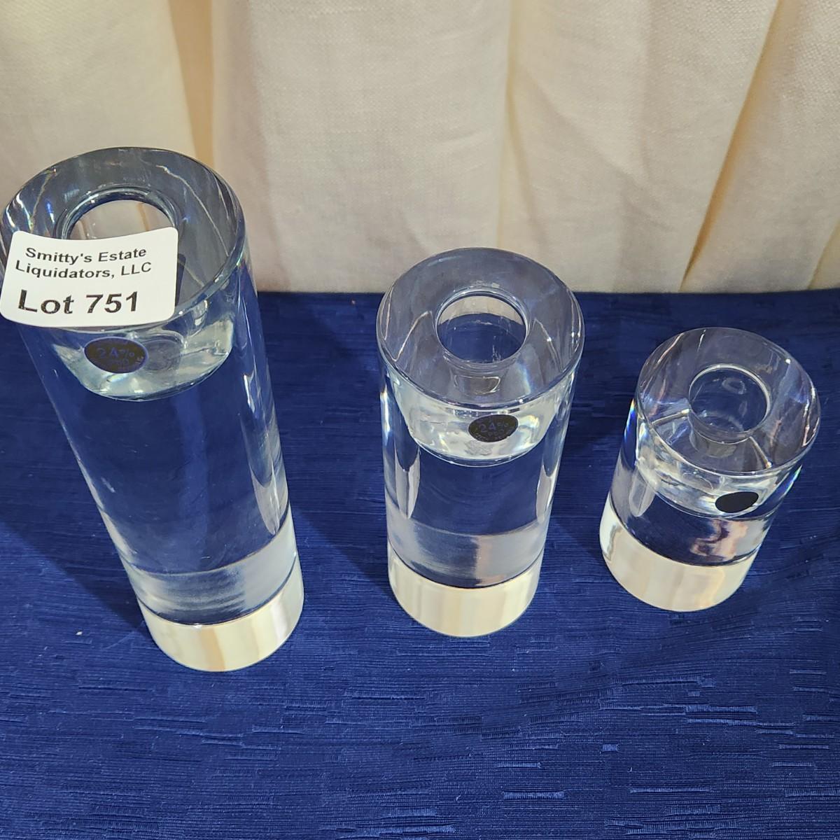 Set of 3 Crystal Bohemia Czech Republic Candle Holders 8",6",4" Tall