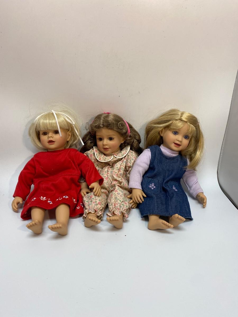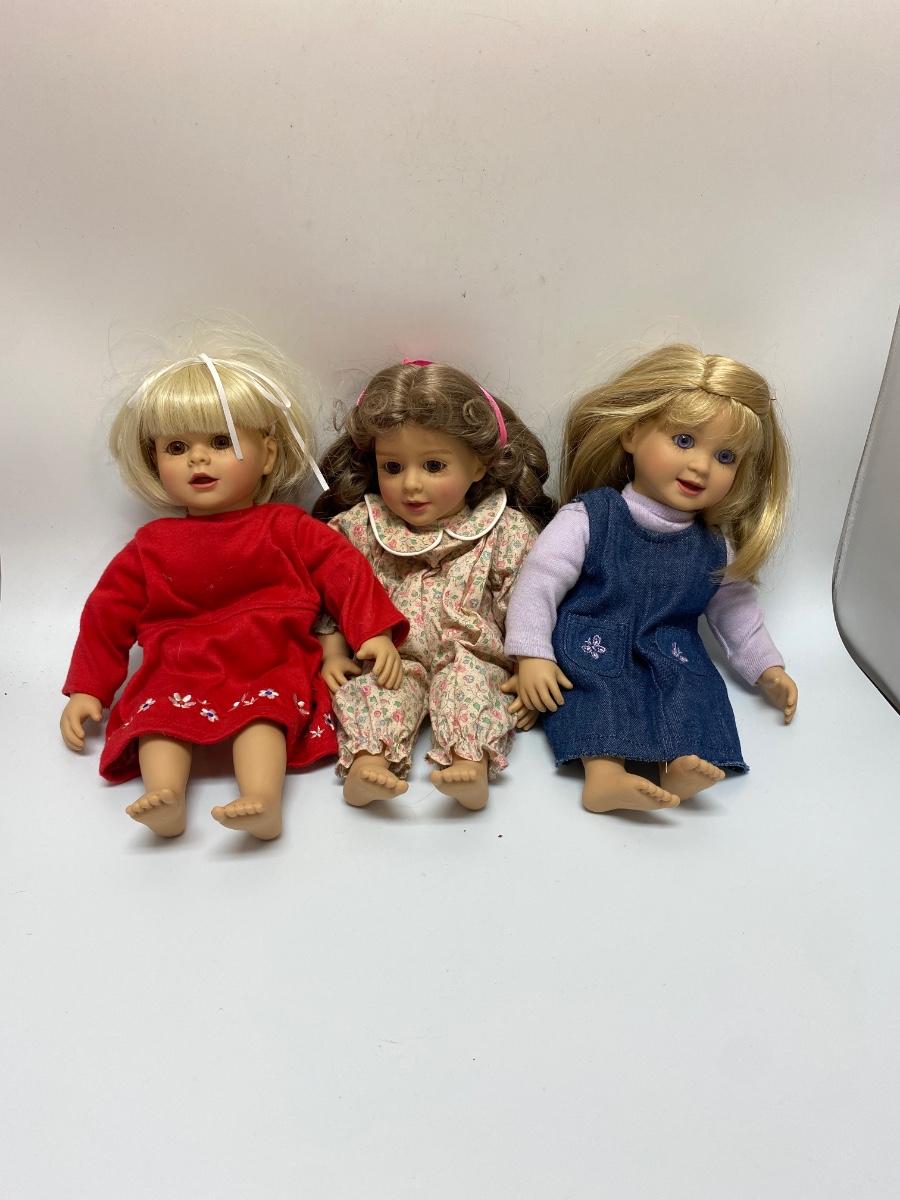 Set of 3 Cuddly Sisters My Twinn Soft Body Vinyl Dolls. Each one is different. Good Condition, About 15" size doll.