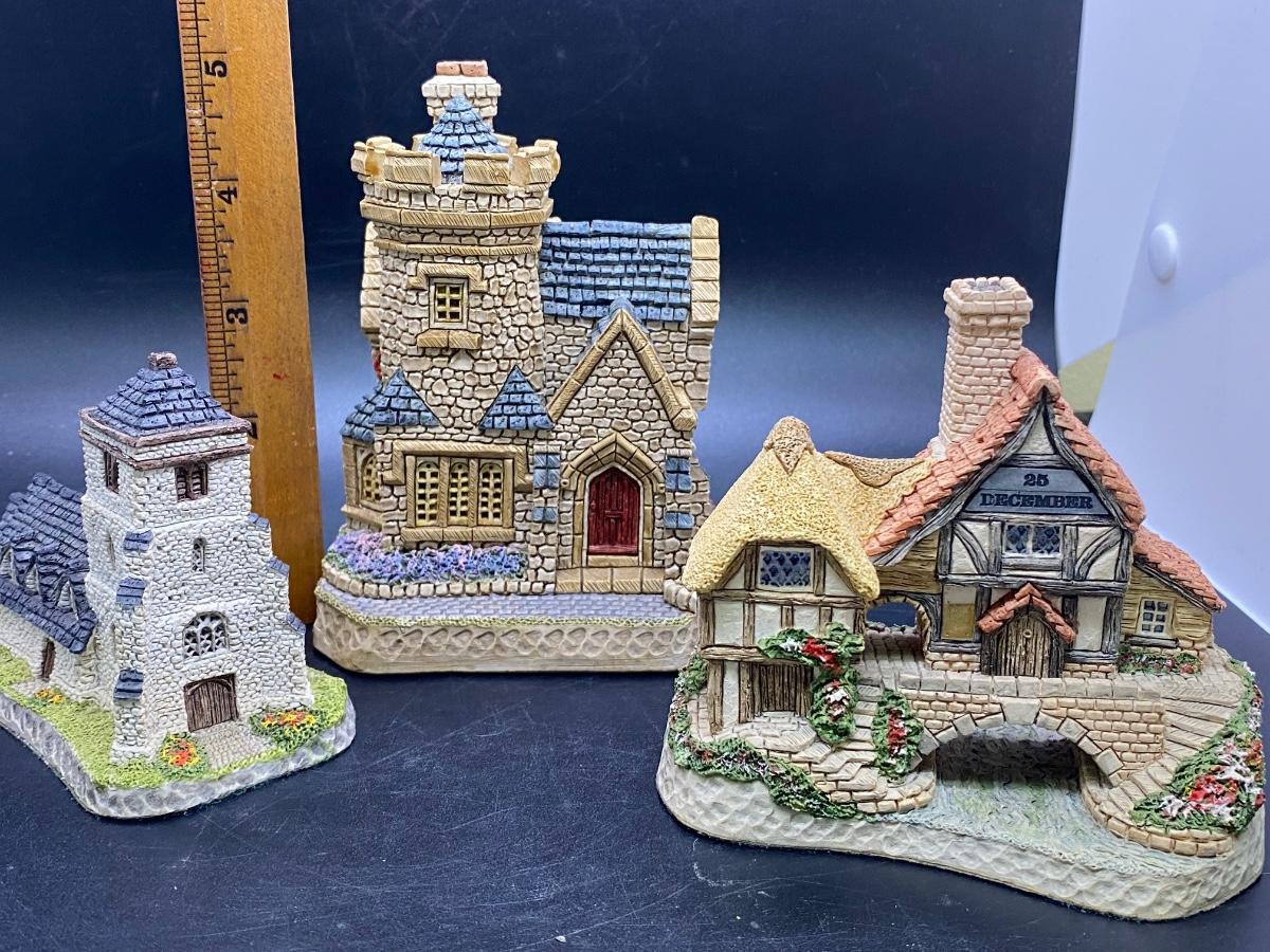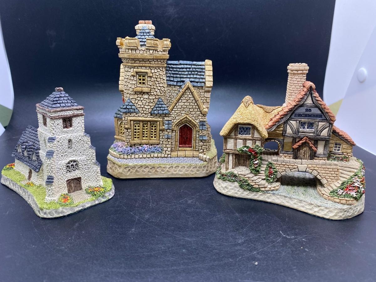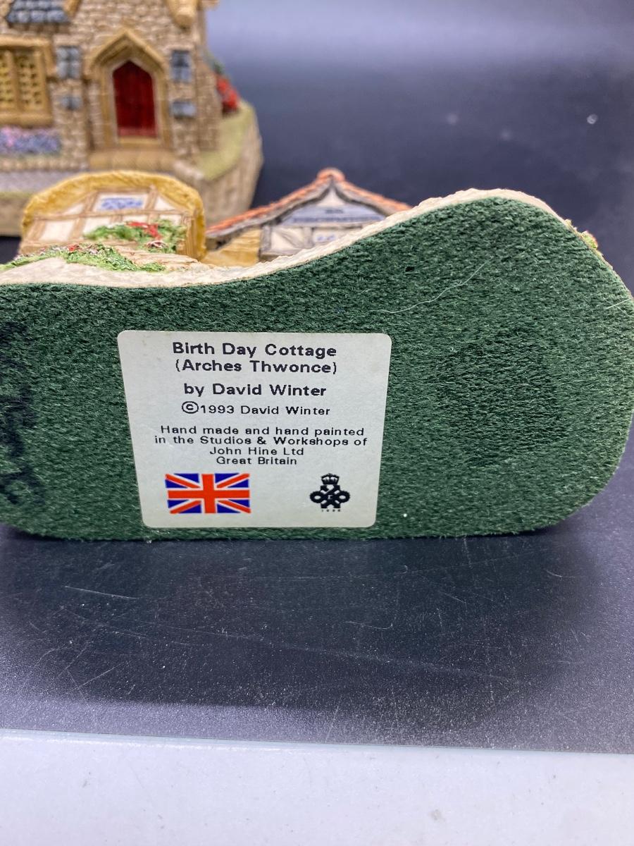 Set of 3 David Winter Cottages. Birth Day Cottage (Arches Thwonce), Abbots, and St. George's Church. All in good condition. Under 6" sizes.