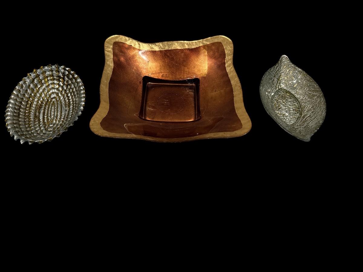 • A spiked oval hobnail dish with silver and gold tones 9 1/2” ( approximately)