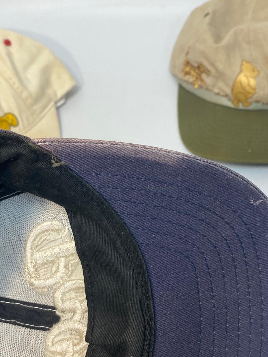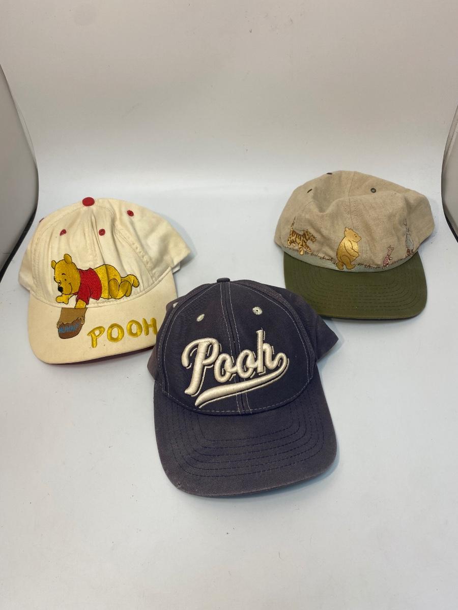 Set of 3 Adult Sized Winnie the Pooh Baseball Hat Caps. Good condition. Unsure if actually worn may have just been displayed with Pooh collection. There is some fade and discolor from display.