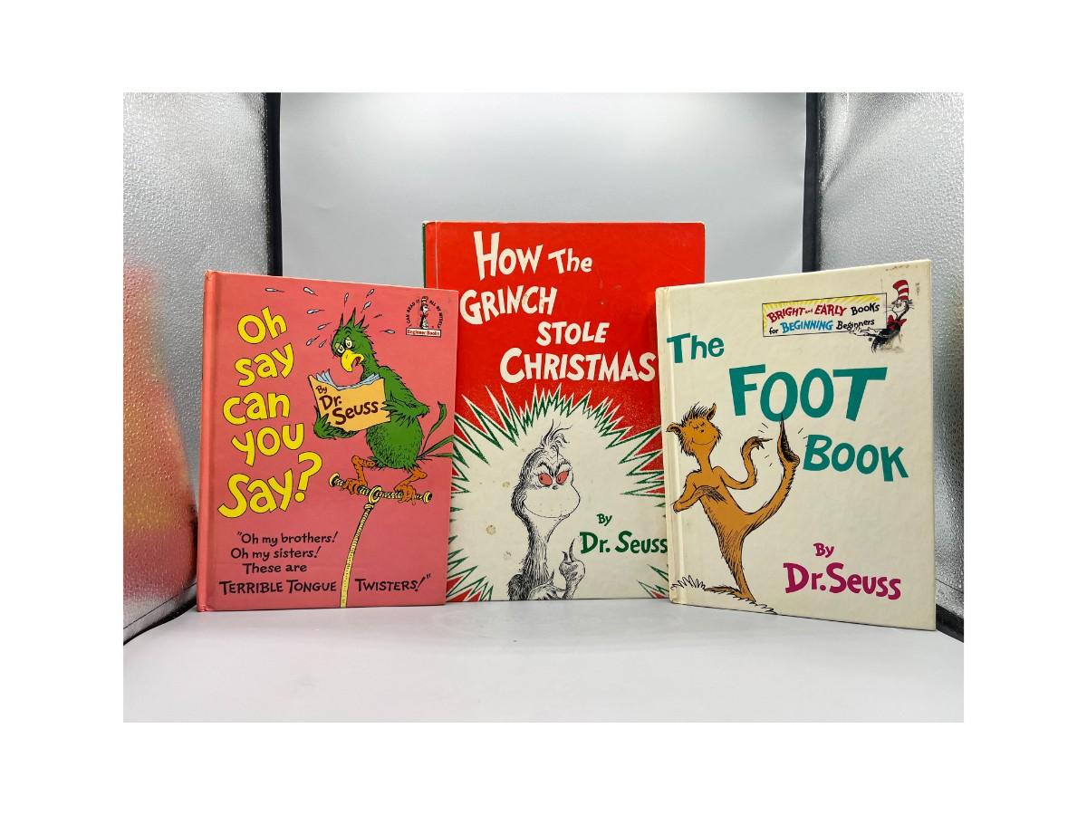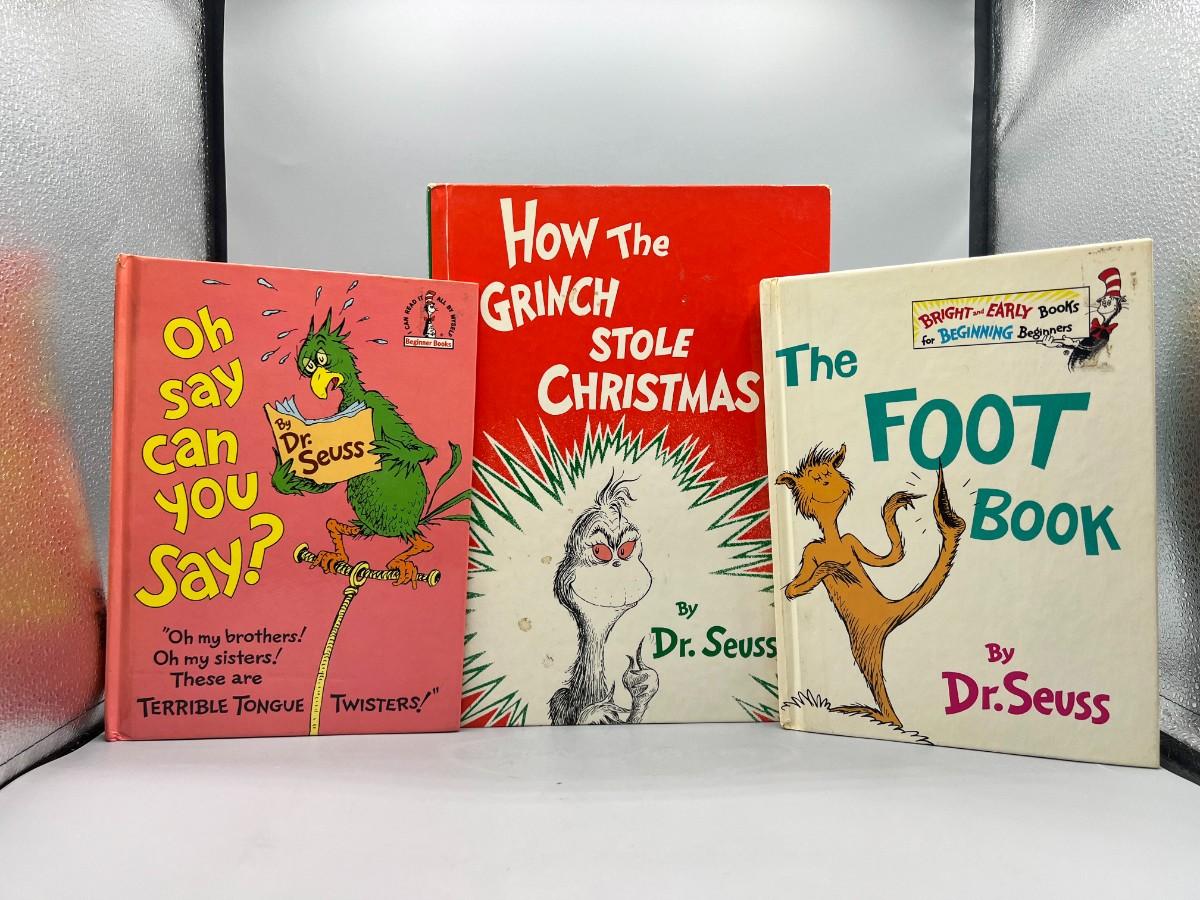 Set of 3 Dr. Seuss Children's Books The Foot Book How The Grinch Stole Christmas Oh Say Can You Say