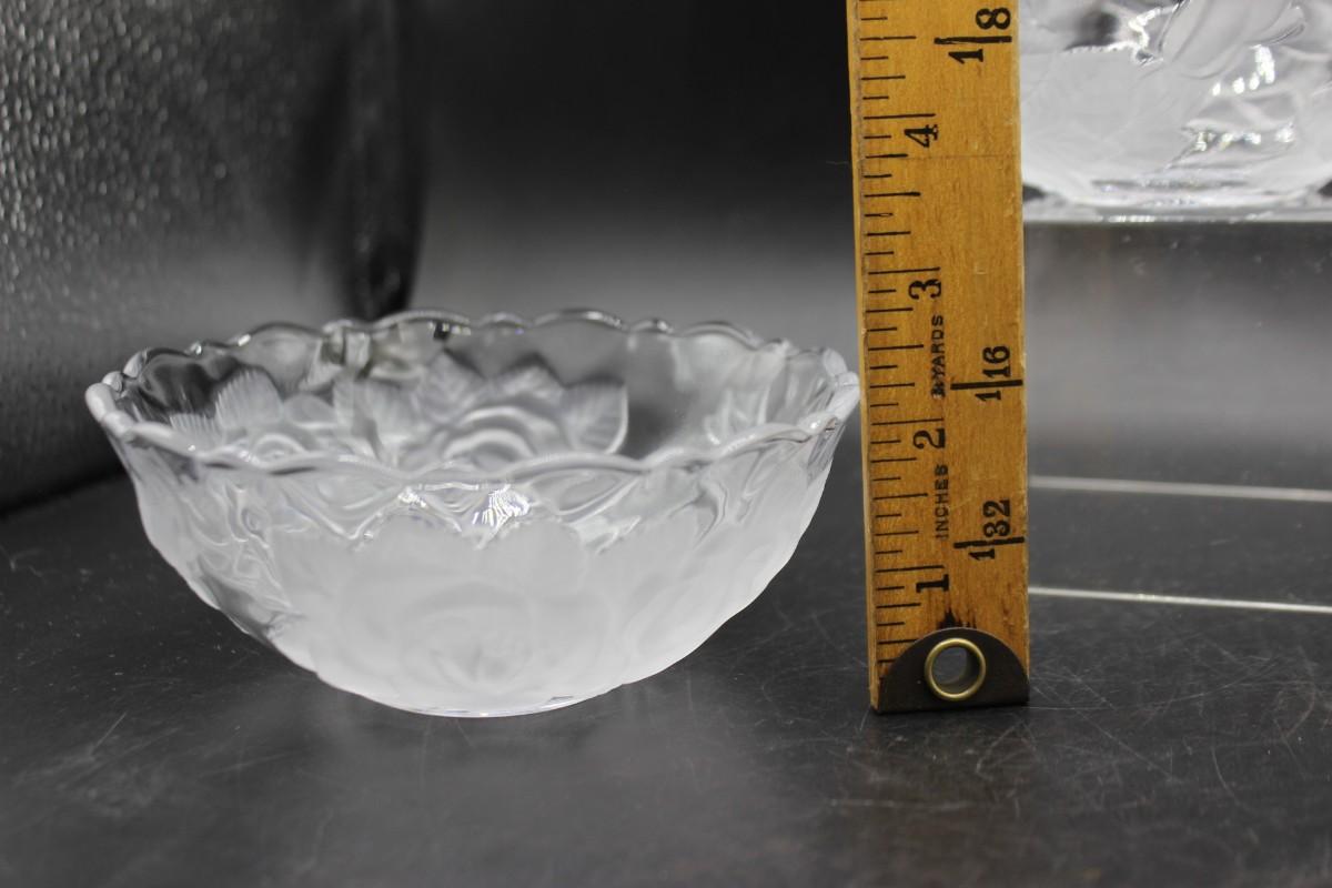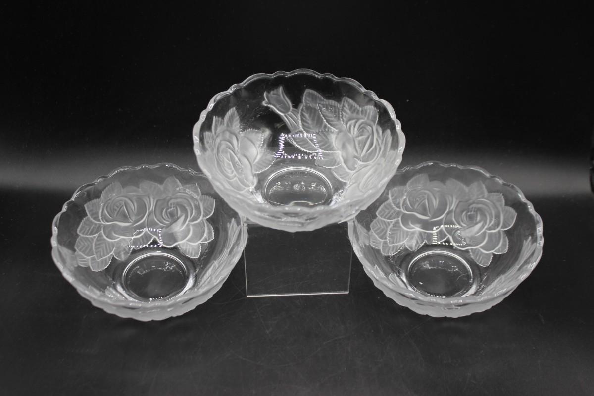 Set of 3 embossed rose fruit/dessert bowls. Good conditon.