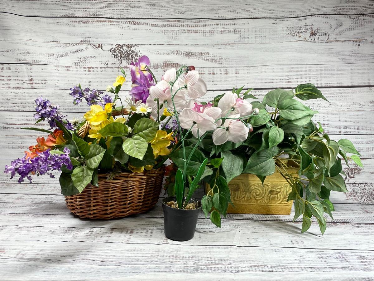 All three items are in good condition. These fake plants are a little dusty due to years of display.