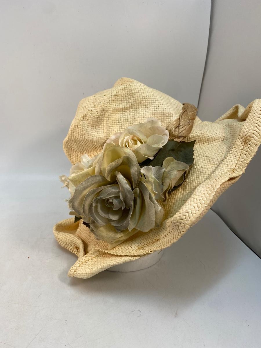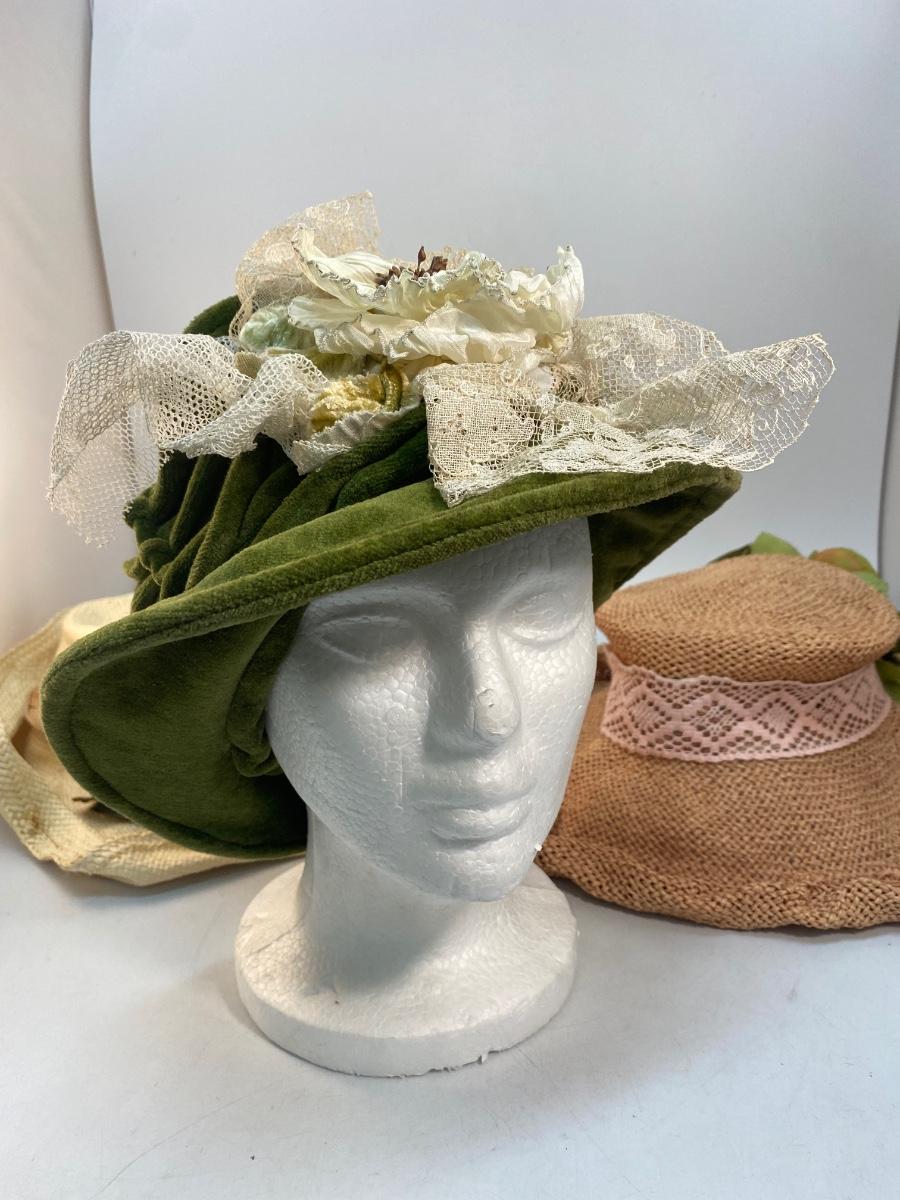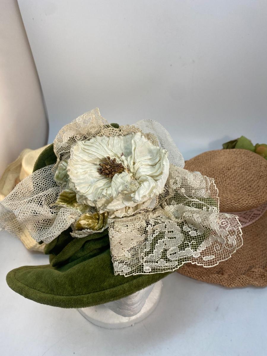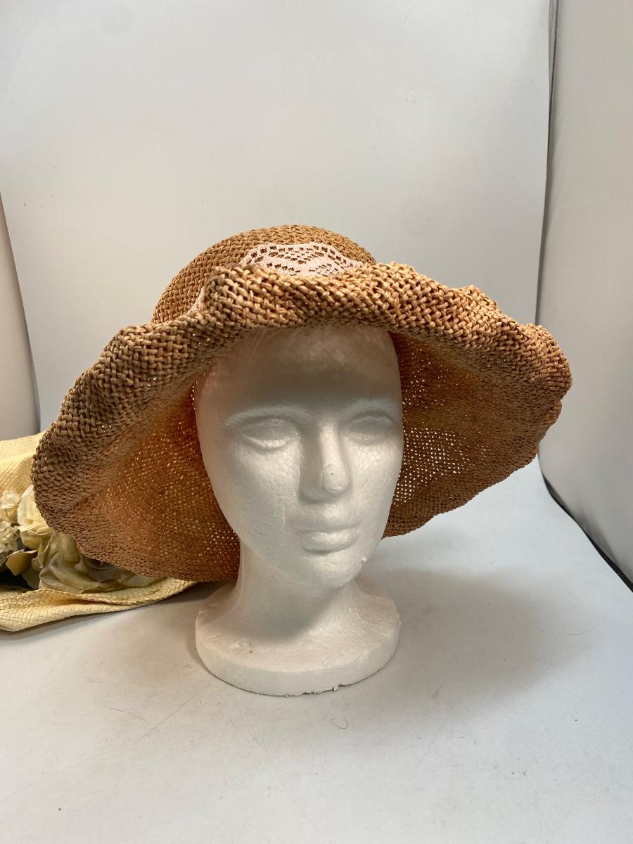 Set of 3 Flower Adorn Floppy Sun Hats. Good condition, may be dusty from display.