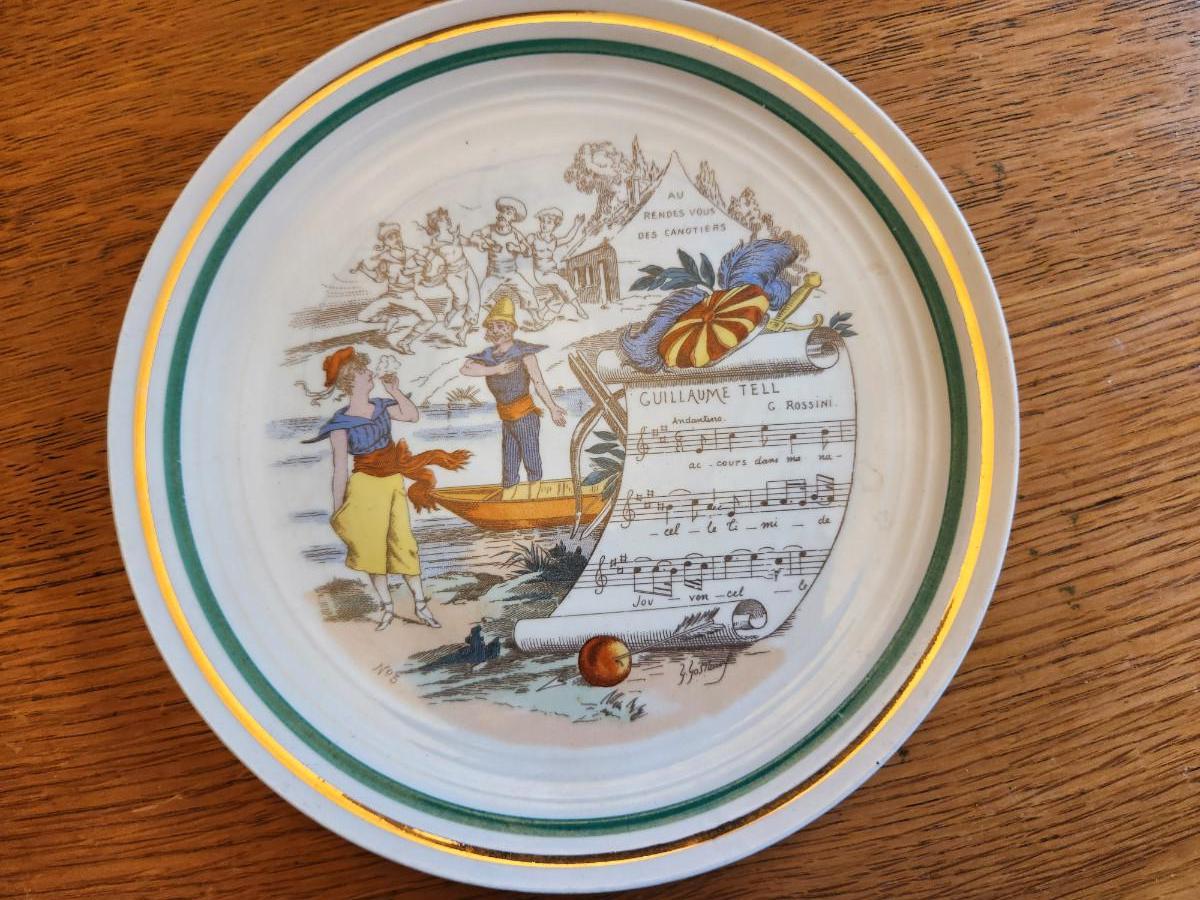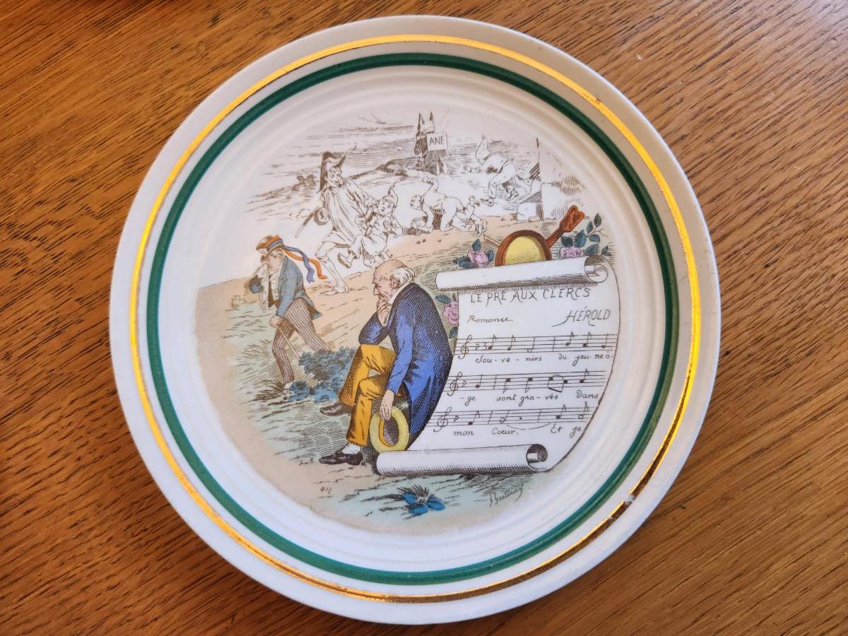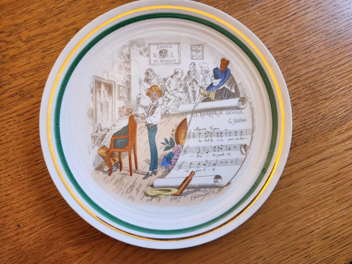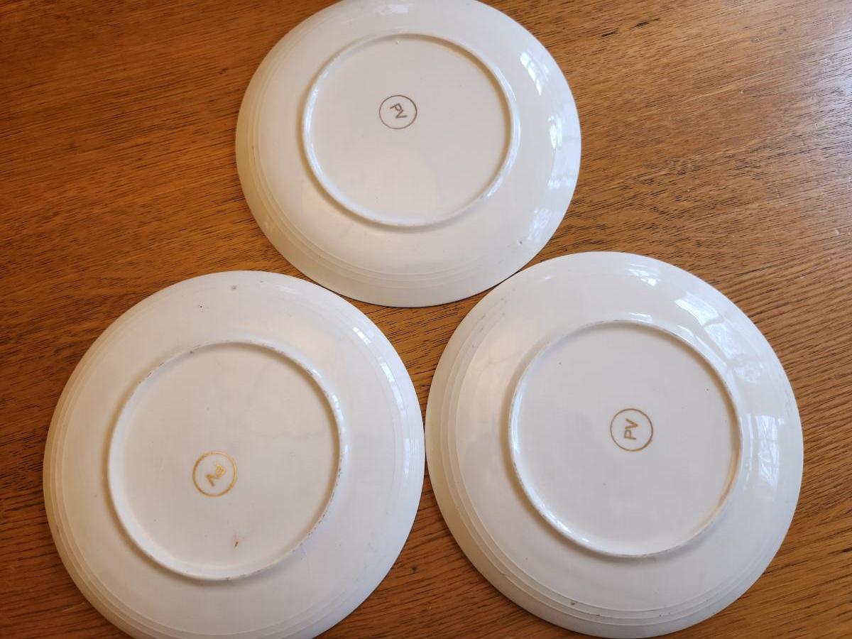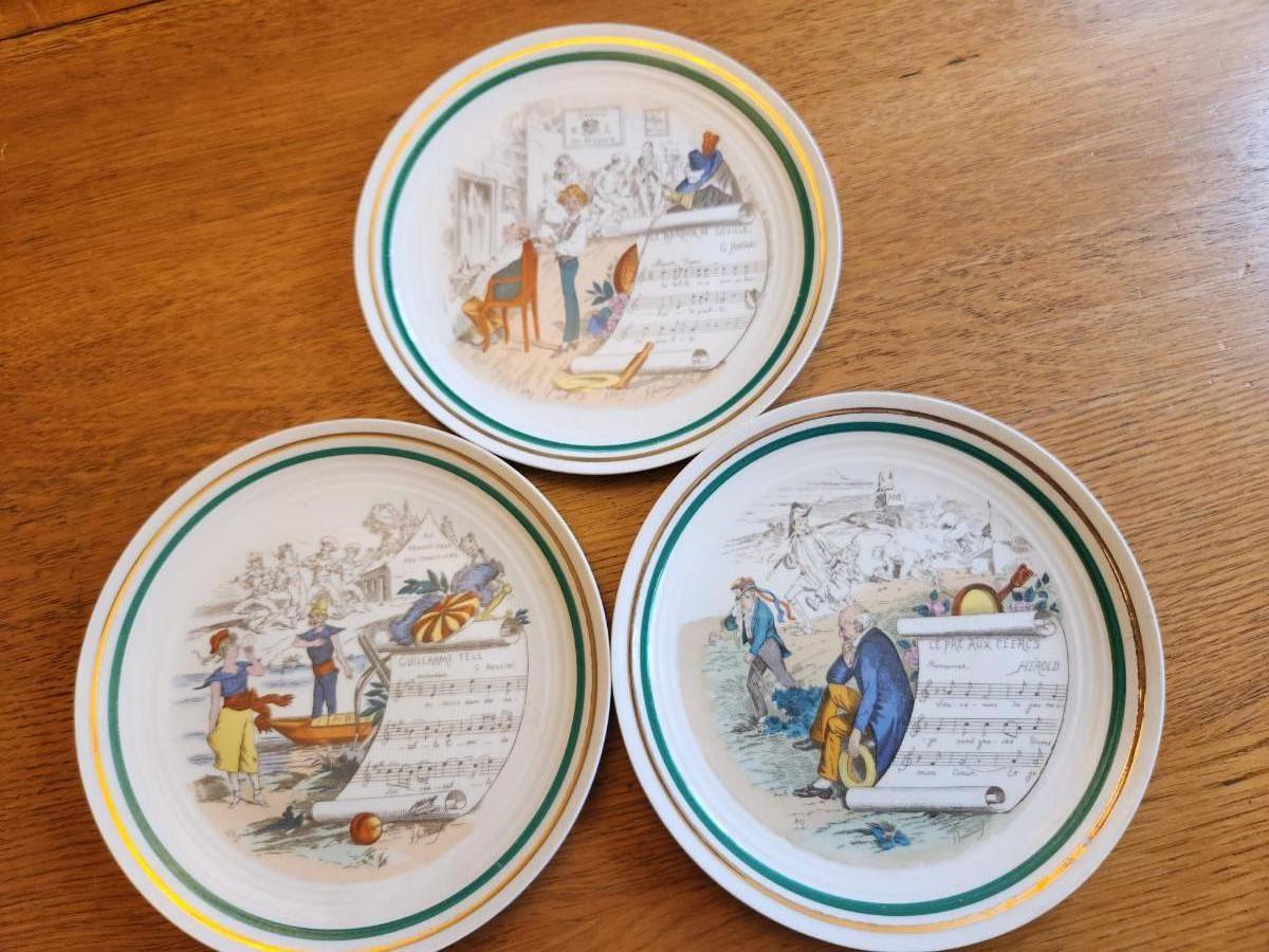 This auction lot is for a Set of 3 French Music-Themed Plates. The plates hold a mark of PV on the verso. The letters P.V. stand for 'Peasant Village' - Peasant Village pottery was made in several countries, including France, Italy, and even in the U.S. The Mittledofer company used the PV logo beginning in 1928 and they continued to use it through the early 1960's. Plates are in good shape, but inspect the photos to determine for yourself.
