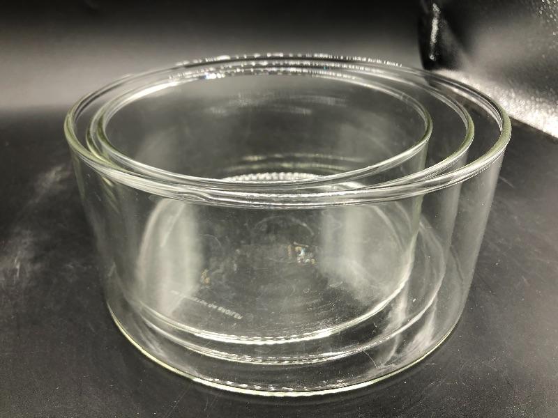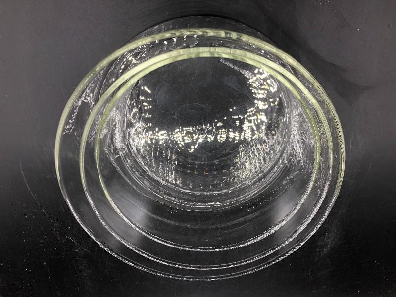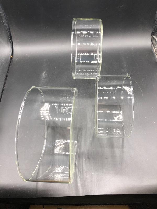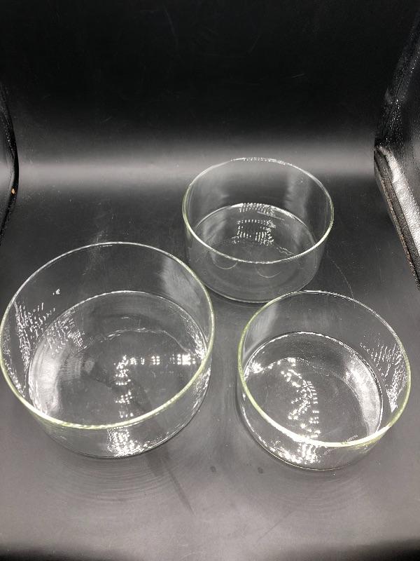 Set of 3 glass bowls. Flat bottom. Good for kitchen or decor use.