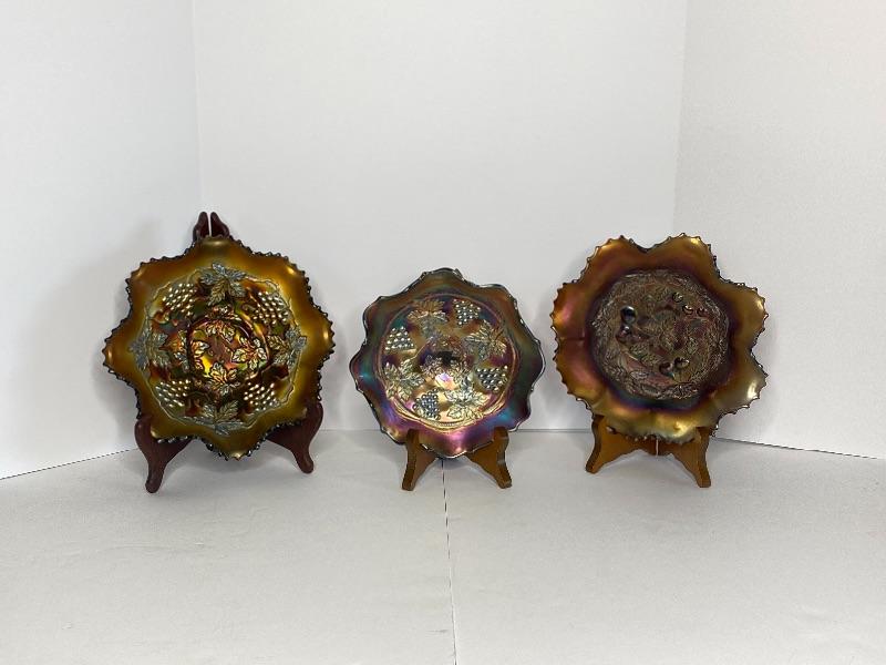 Set of 3 Vintage Glass Mardi Gras Carnival Fruit Candy Dishes