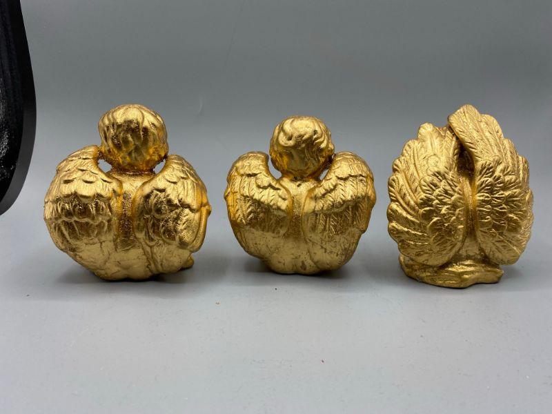 Set of 3 Gold Painted Cherub Angel Figurines YD#012-1120-00077