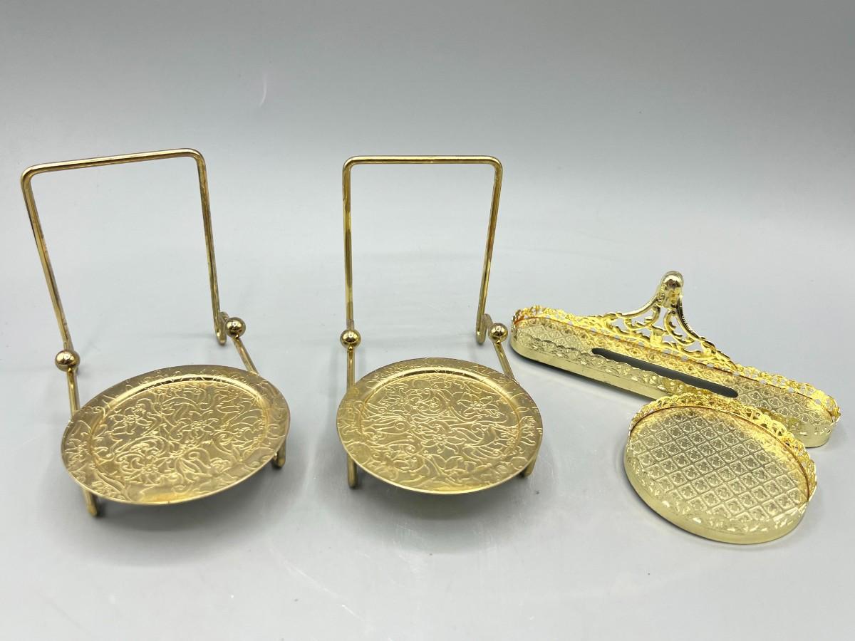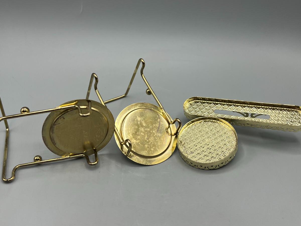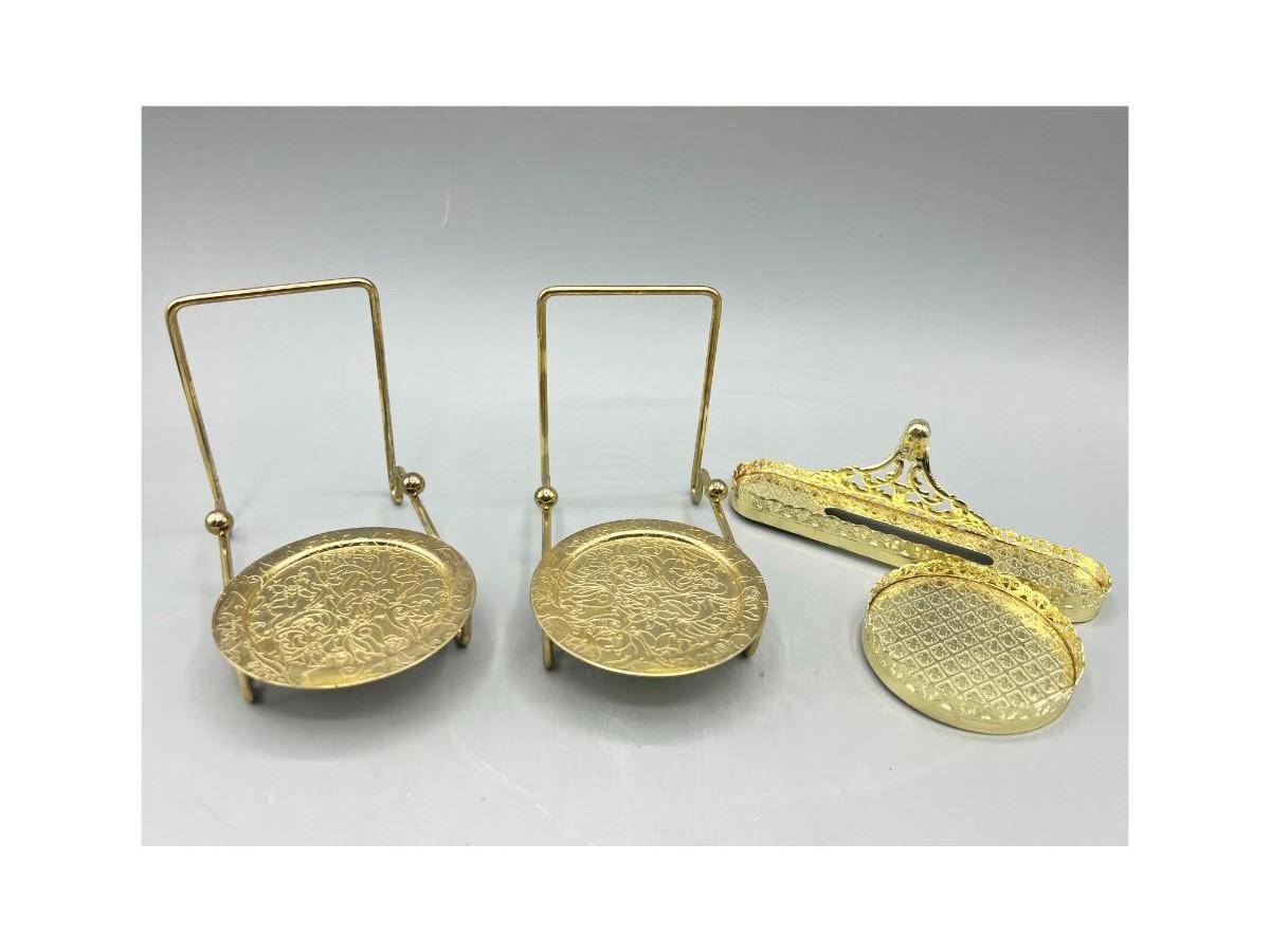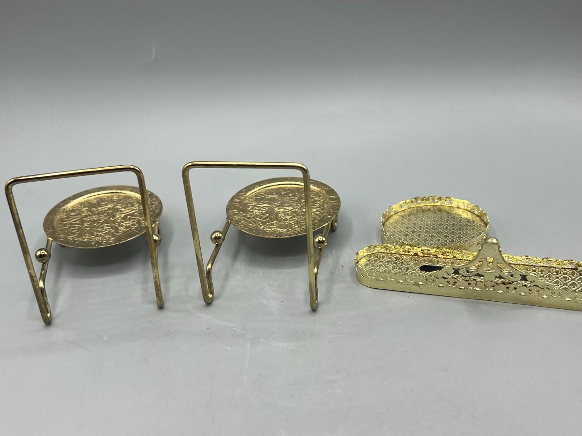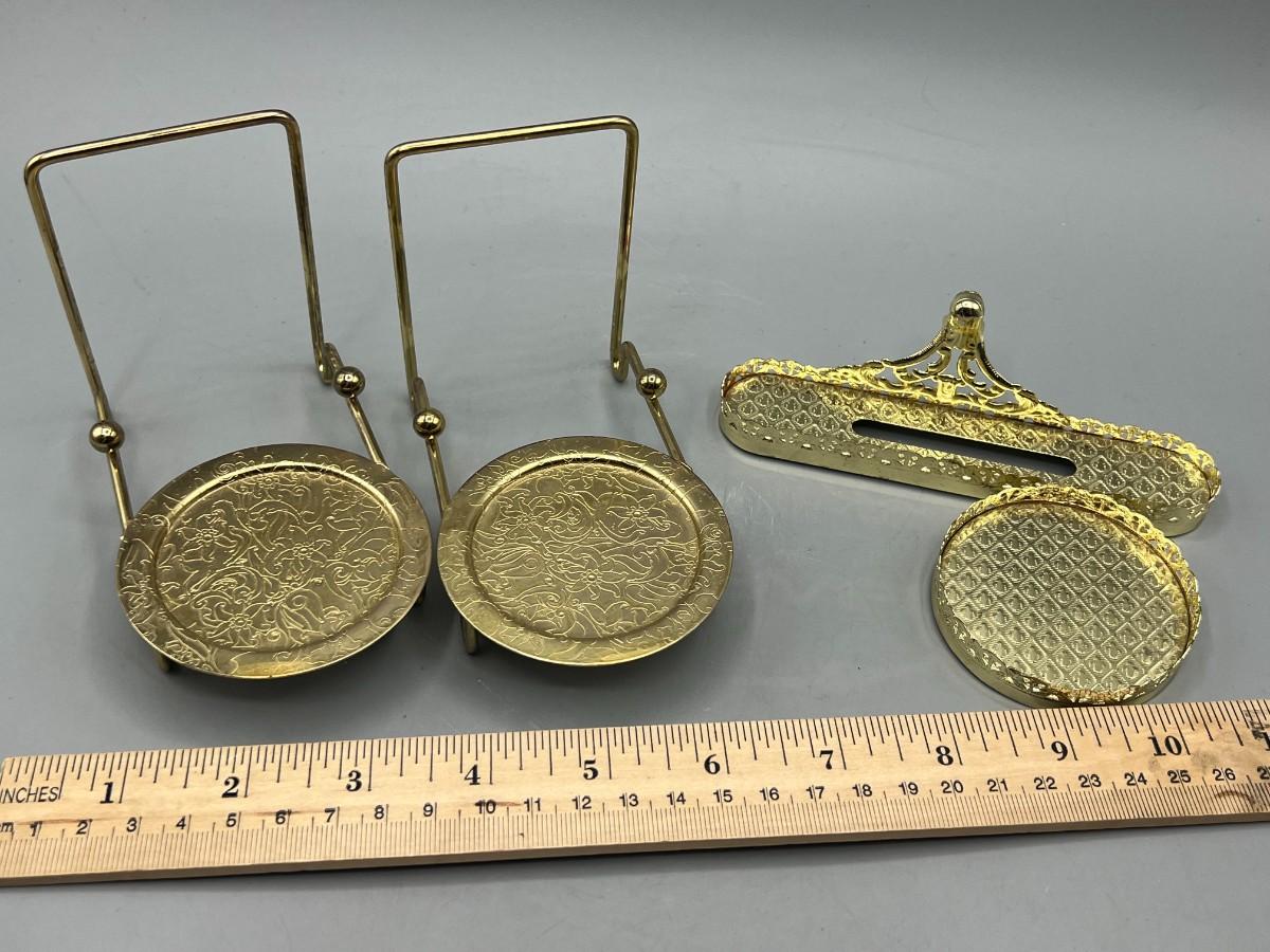 Set of 3 Gold Tone Teacup and Saucer Display Stands