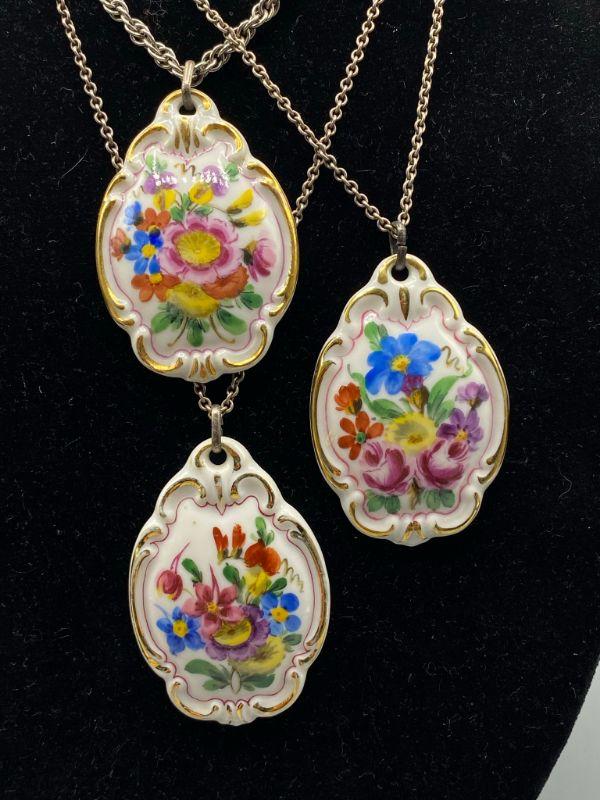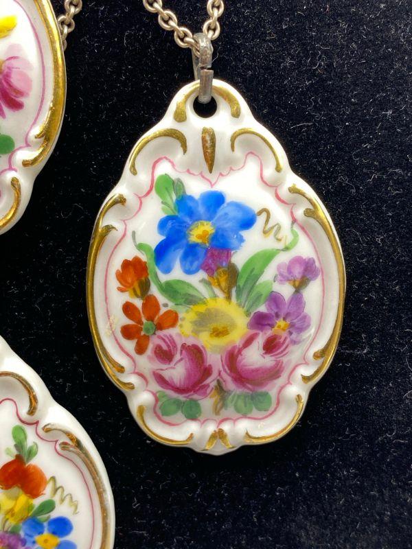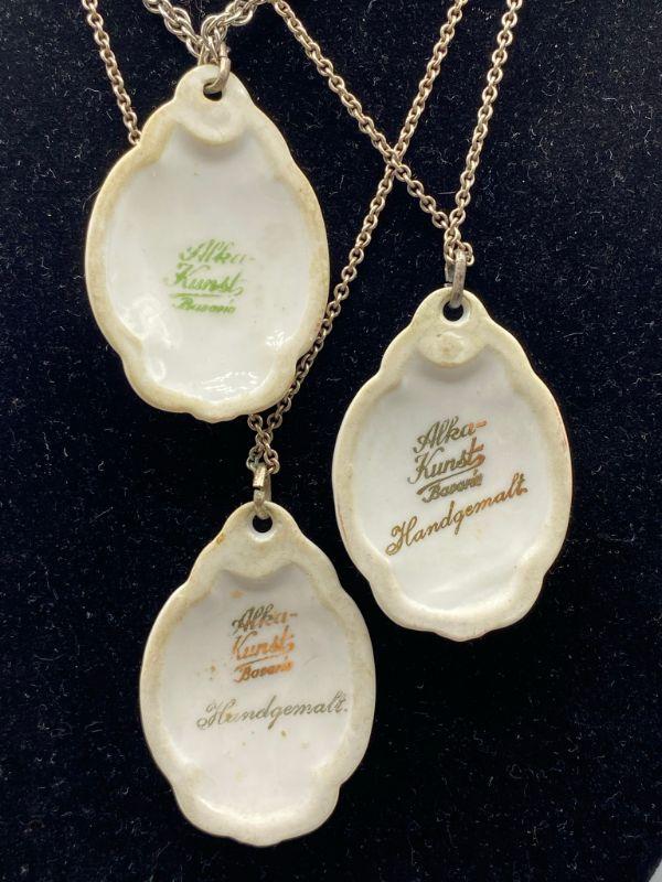 Set of 3 Hand Painted Alka Kunst Bavaria Porcelain Pendant Necklaces YD#001-1120-00138