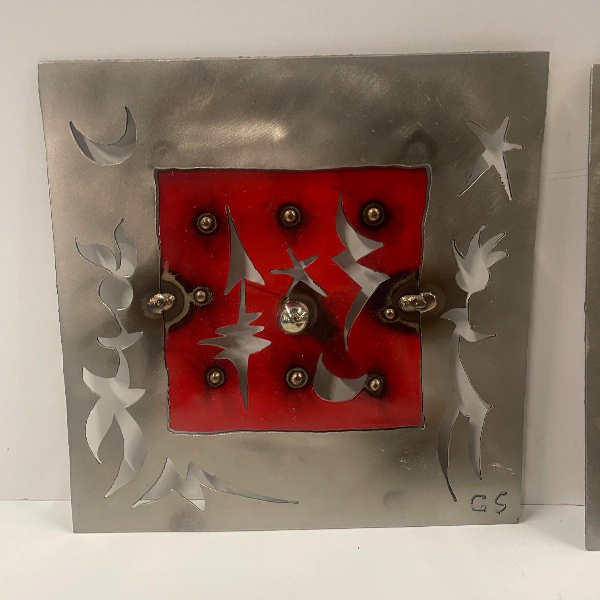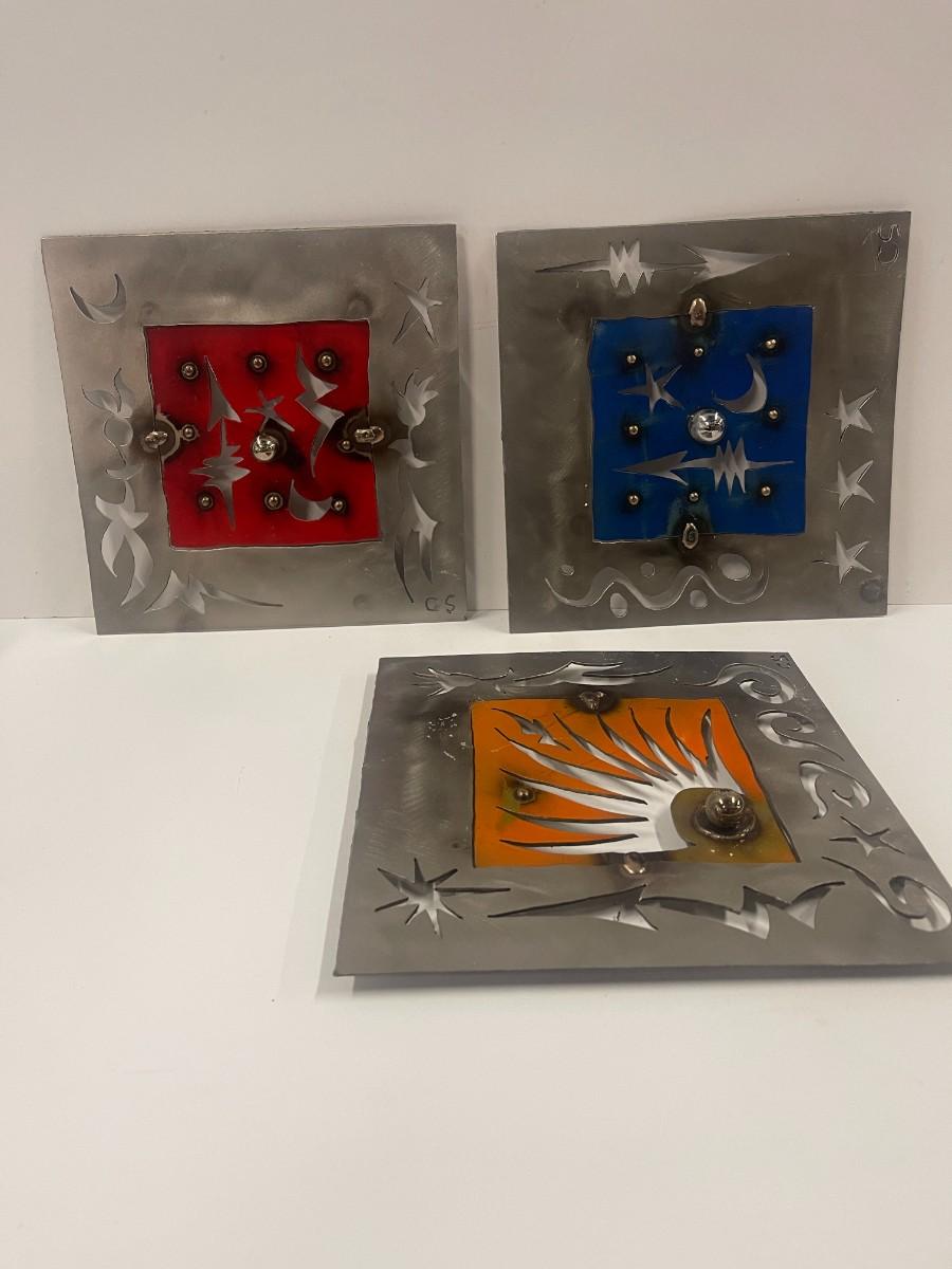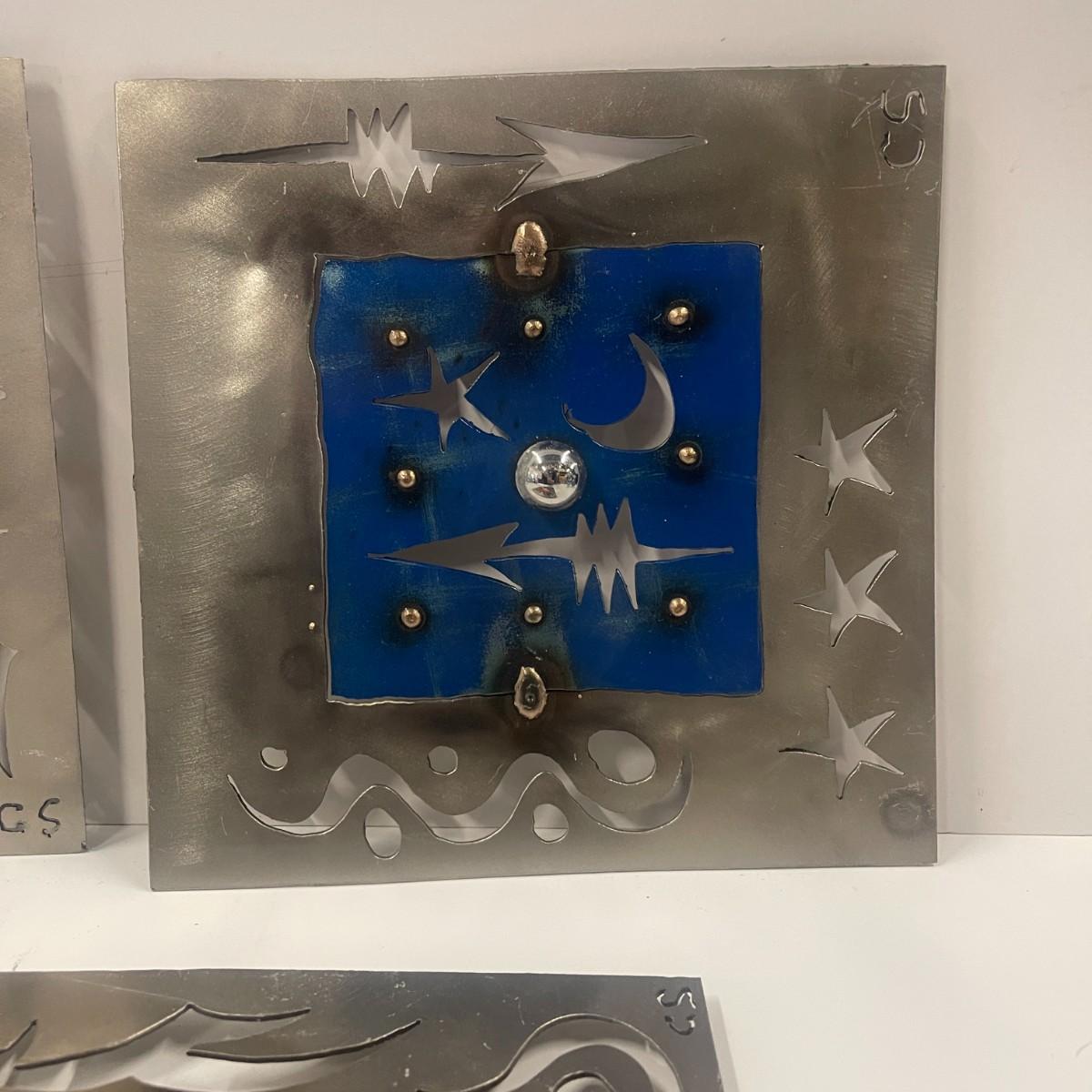 Set of 3 Handmade Metal Wall Art Panels, Signed