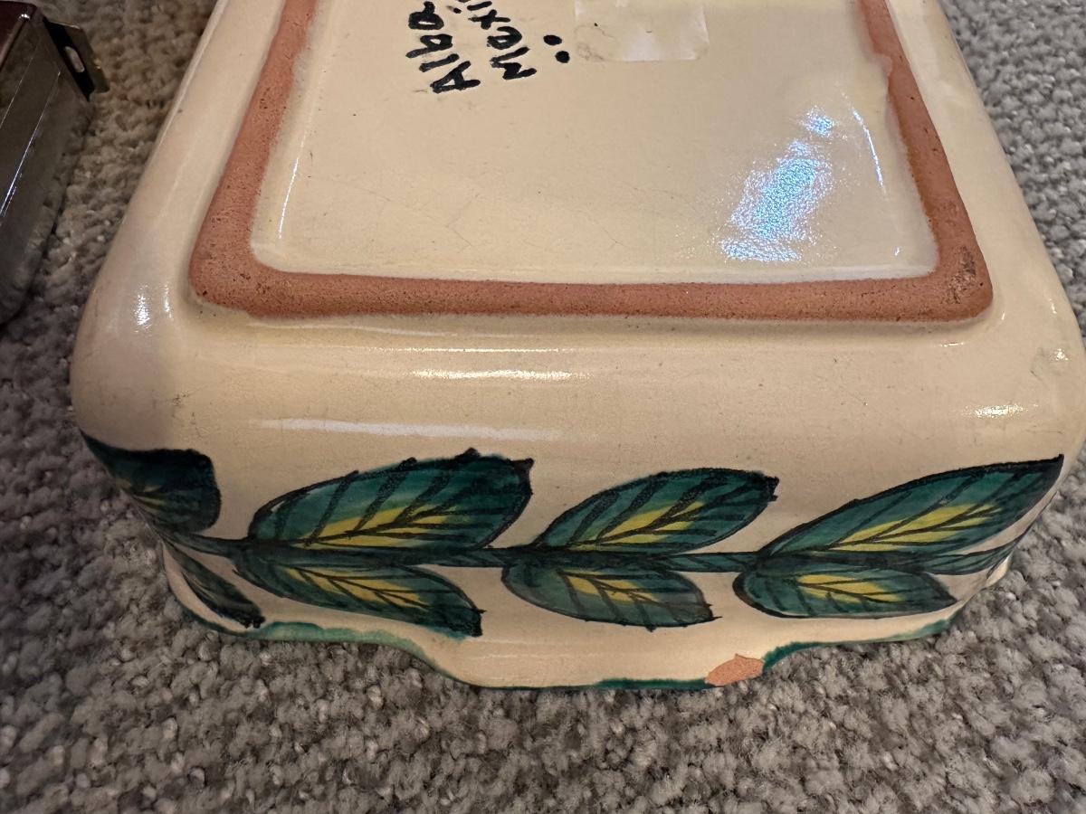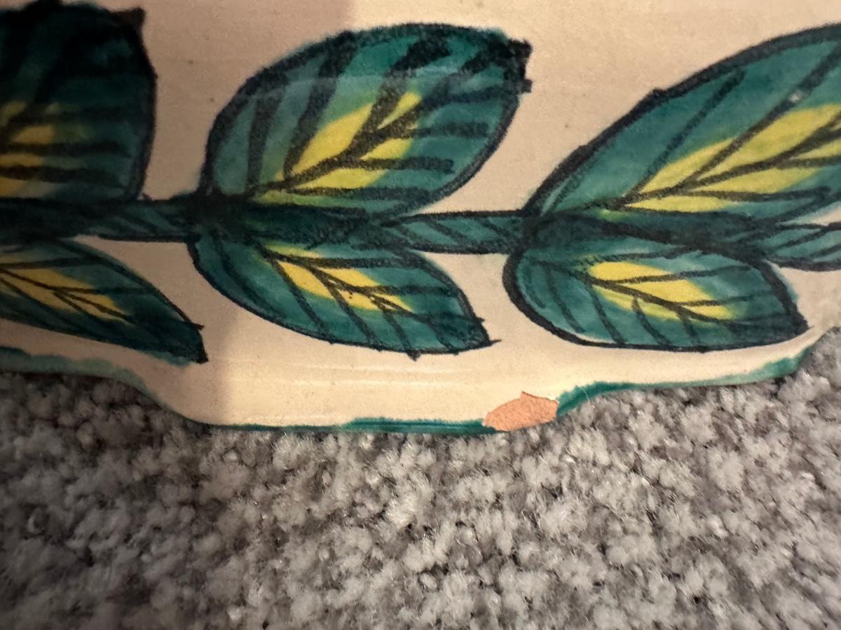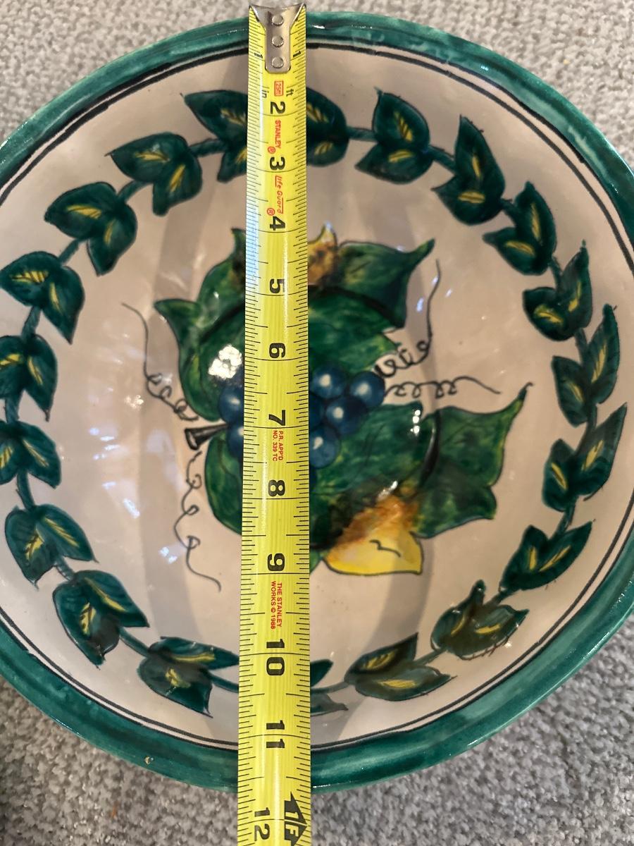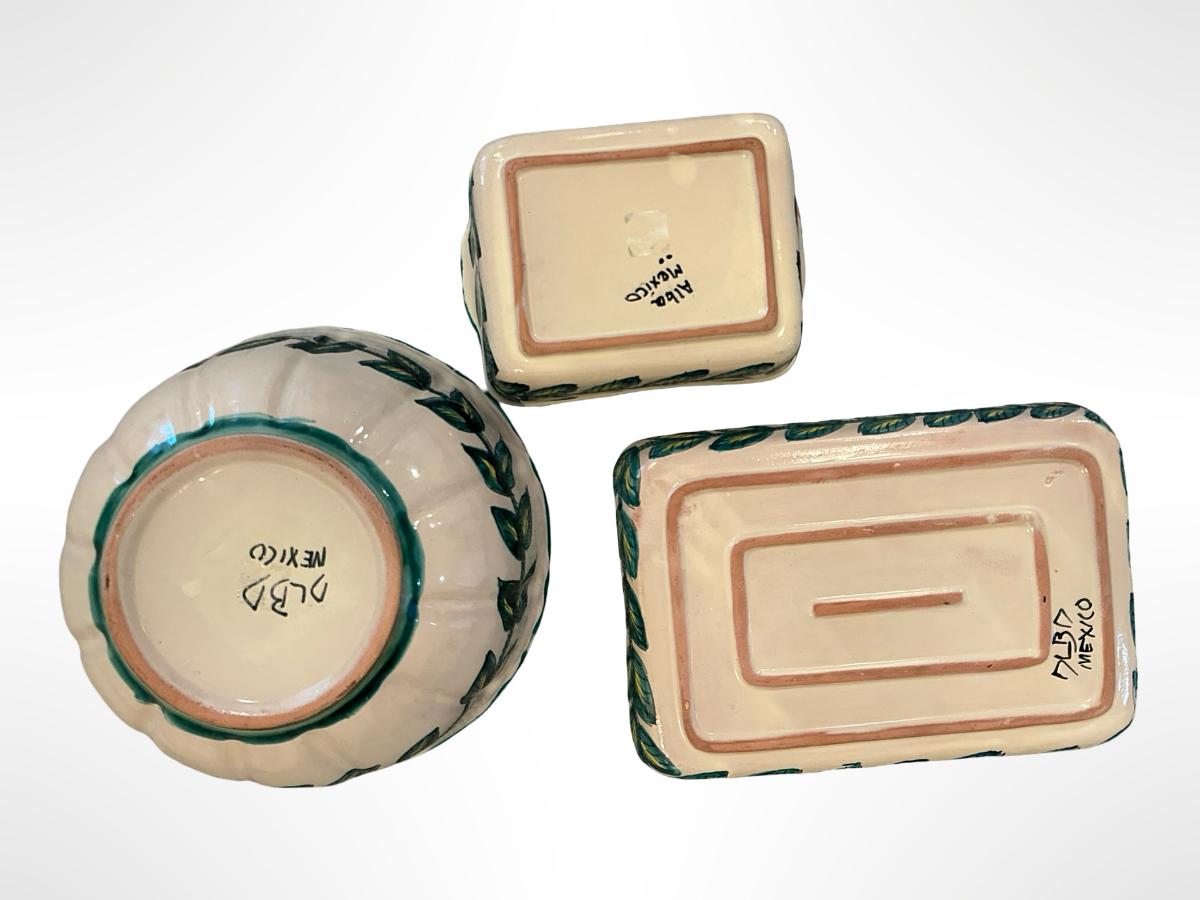 Set of 3 Hand-Painted Mexican Pottery Serving Dishes with Blue Grape and Leaf Design