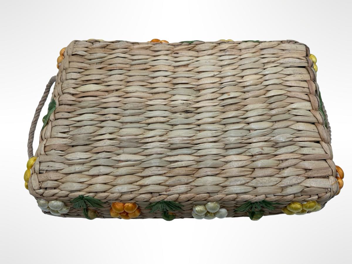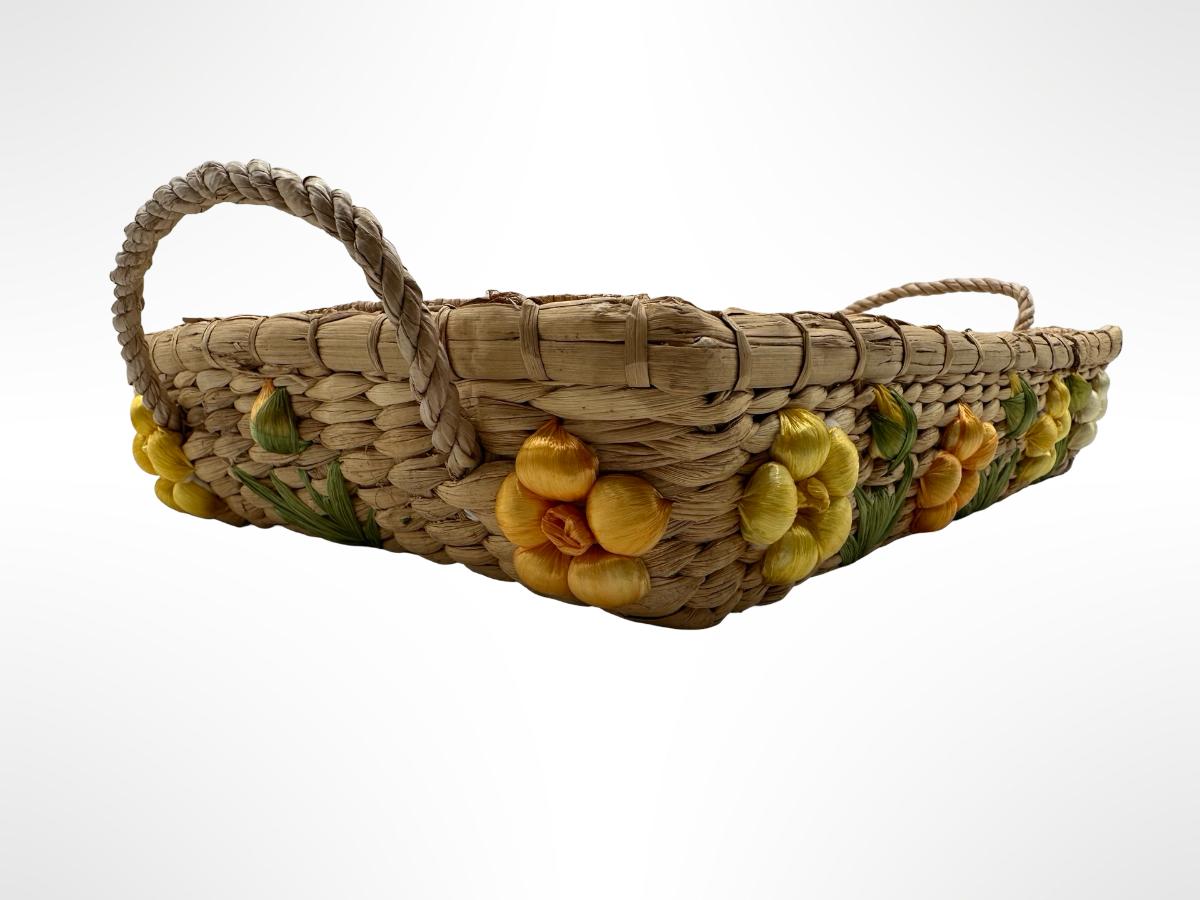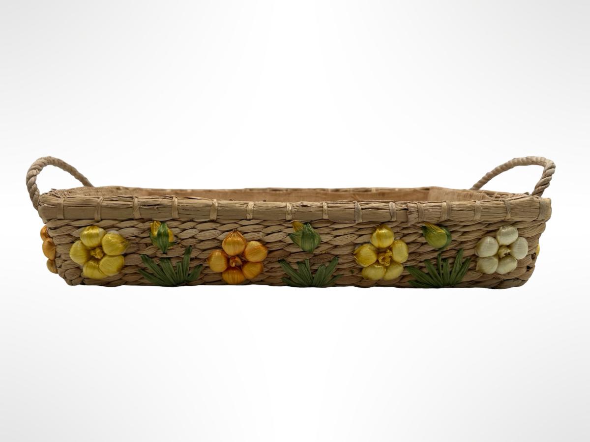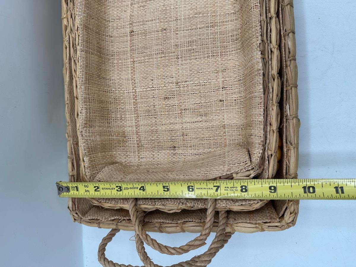 Set of 3 Handwoven Wicker Casserole Holders with Raffia Flower Accents.