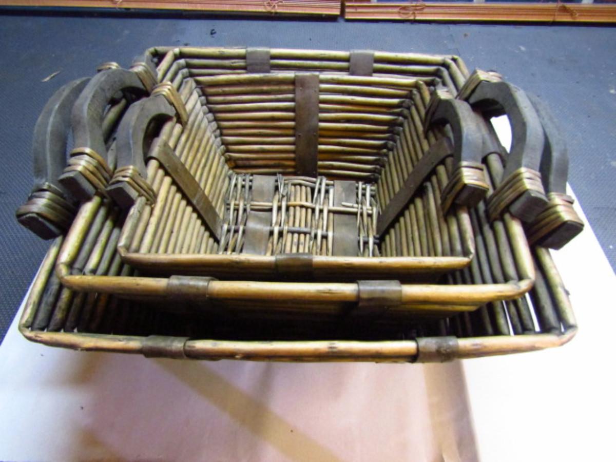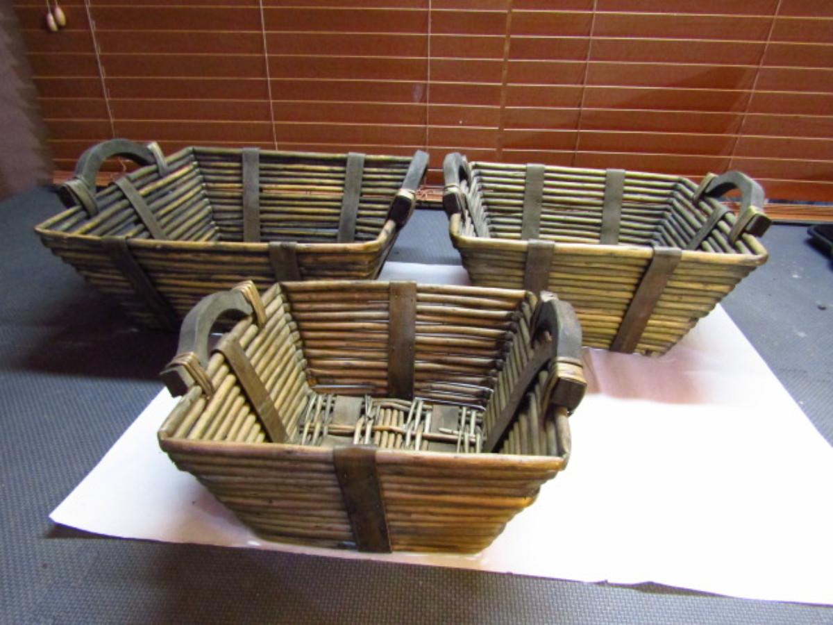 Set of 3 Nesting Baskets with Wooden Handles (G).