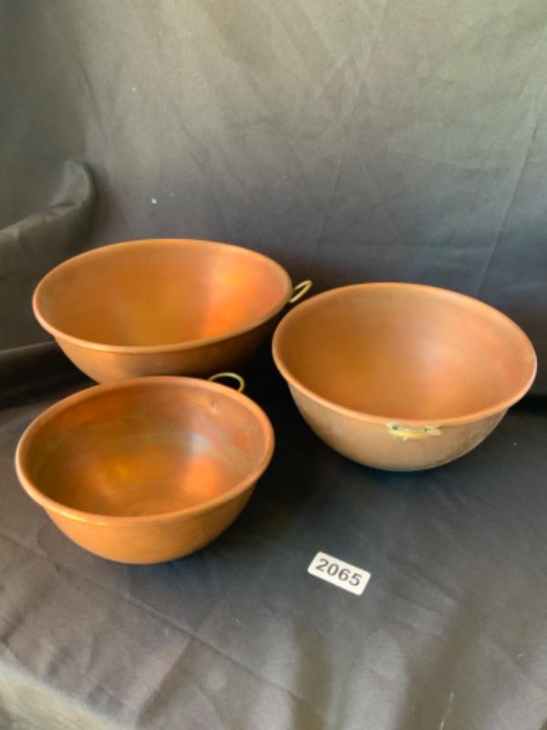 Set of 3 Large Vintage Copper Bowls Lot 2065