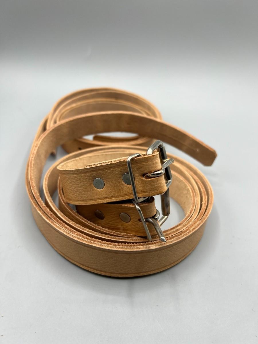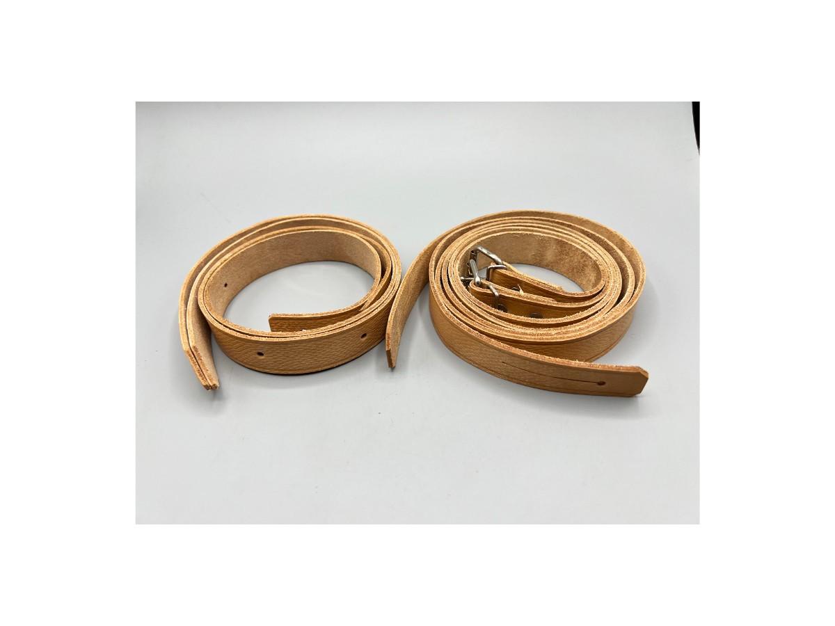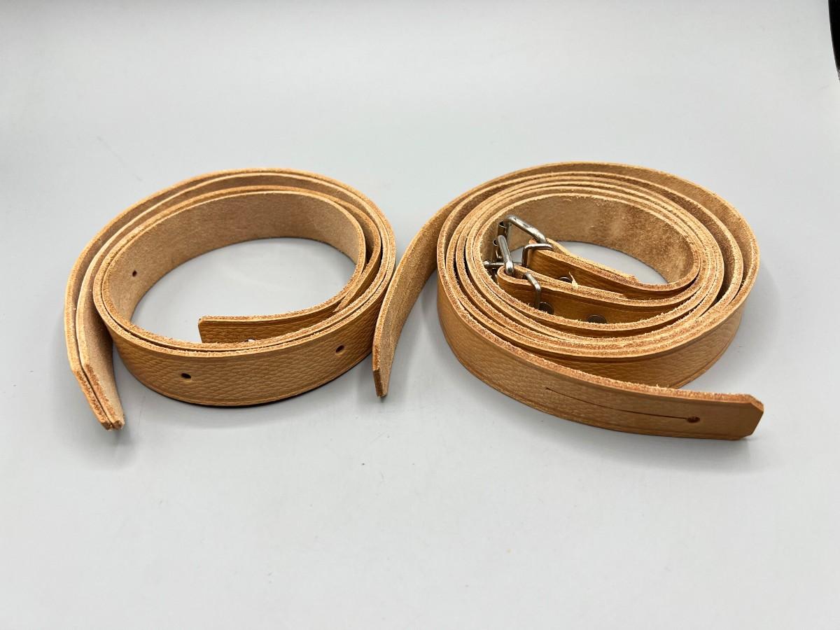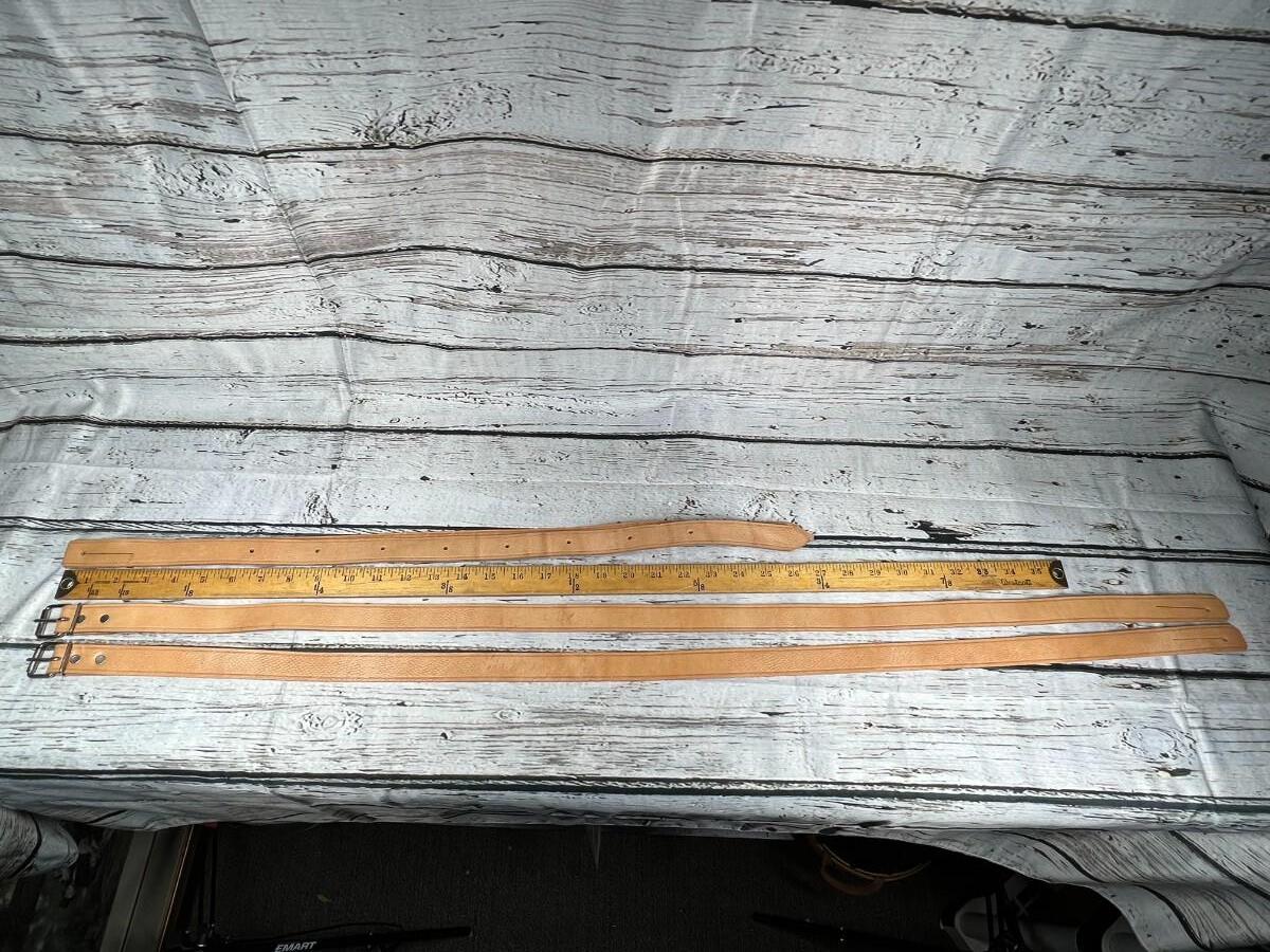 Set of 3 leather straps. Two have hardware for securing, one does not. Good vintage conditions.