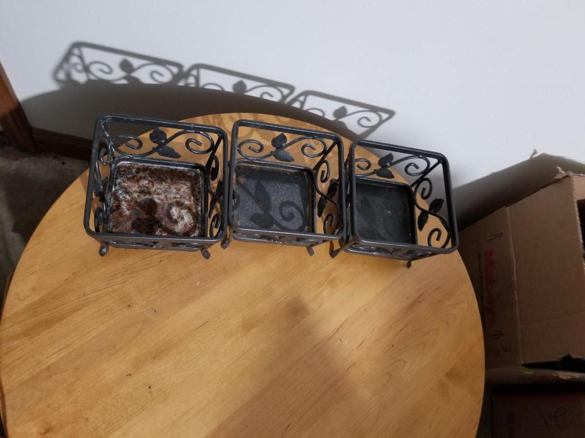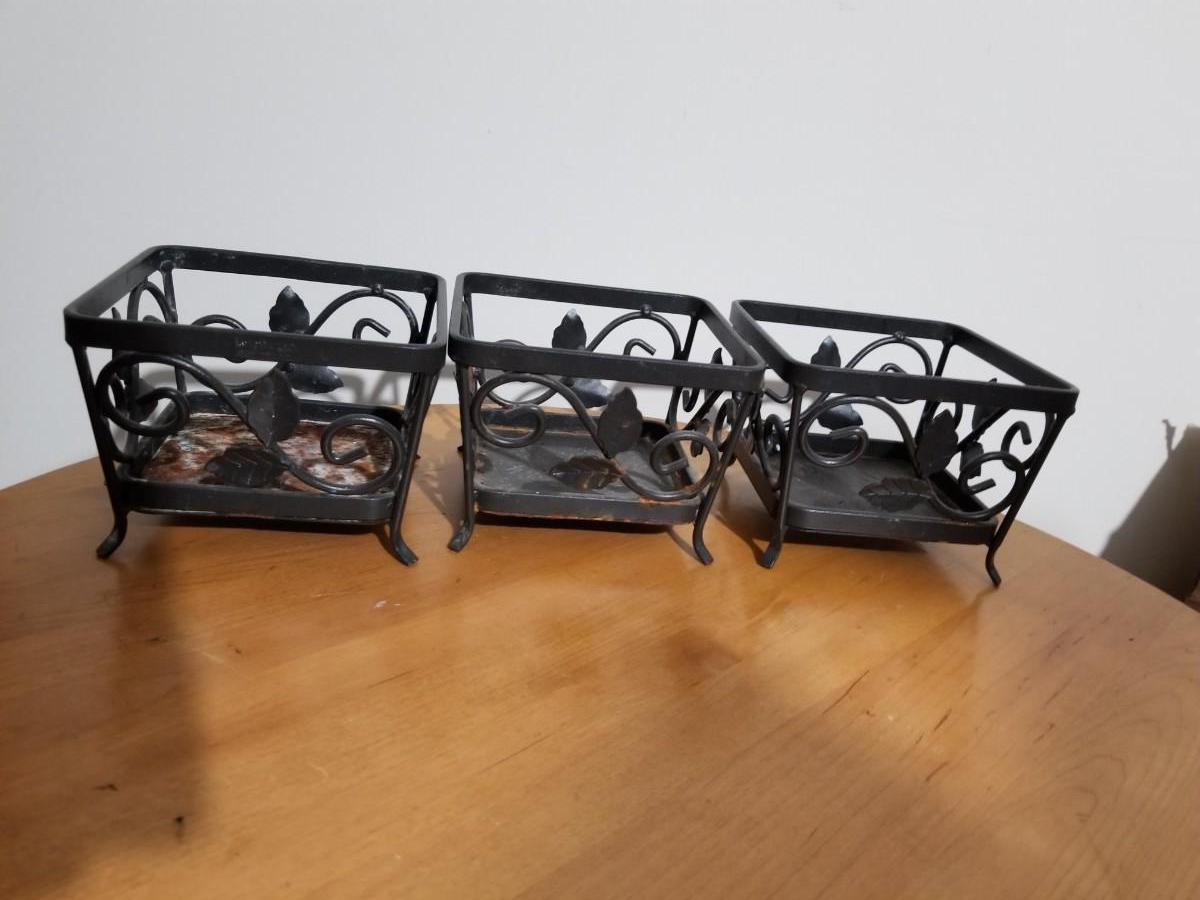 Longaberger iron candle holders. *** One has a slight bit of rust on it.