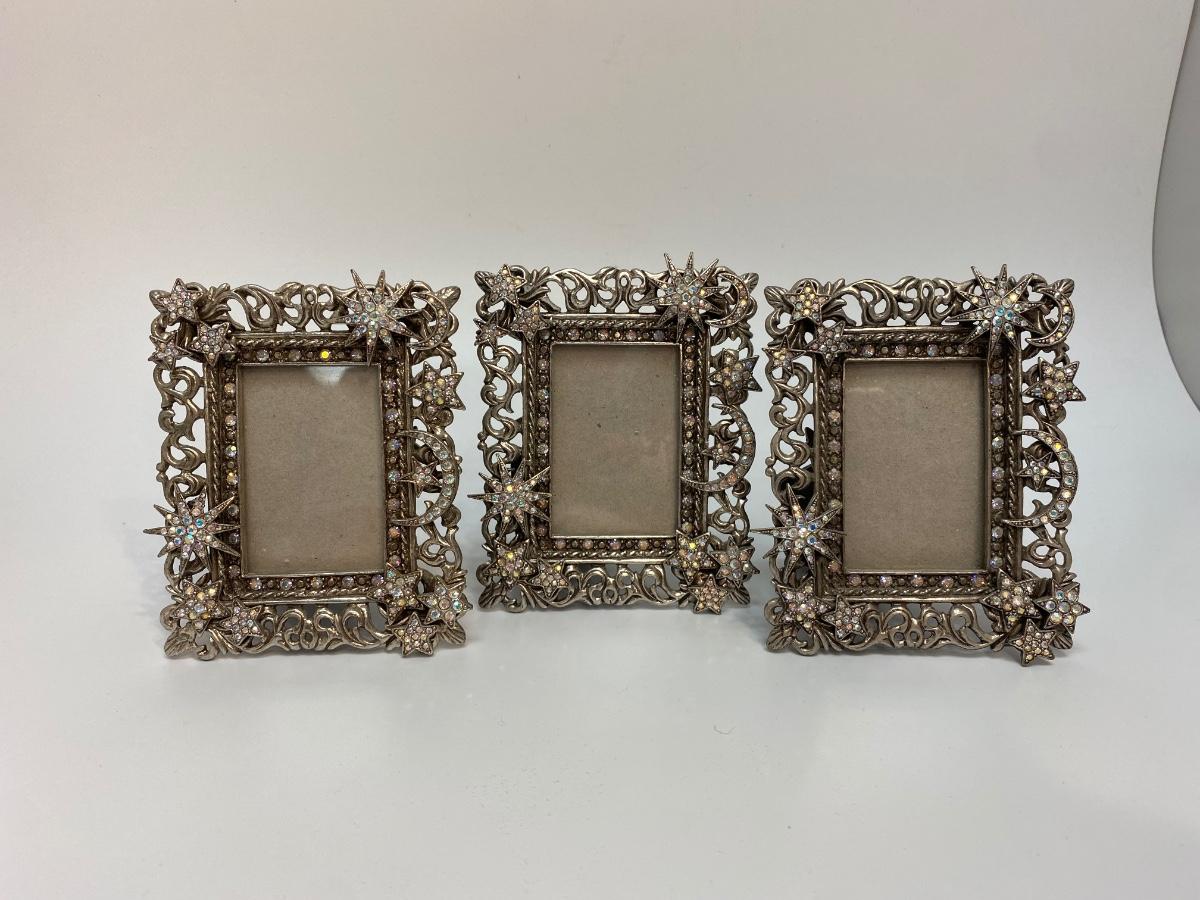 Set of 3 Matching Kirks Foley Metal & Rhinestone Picture Photo Frames