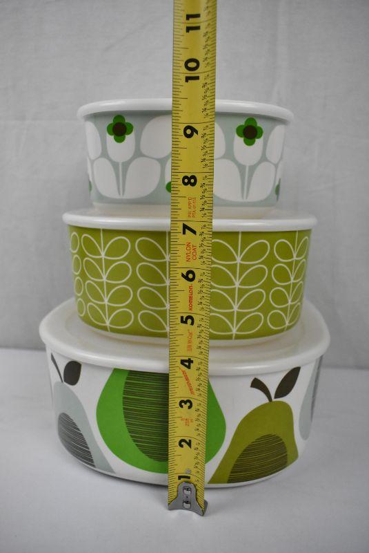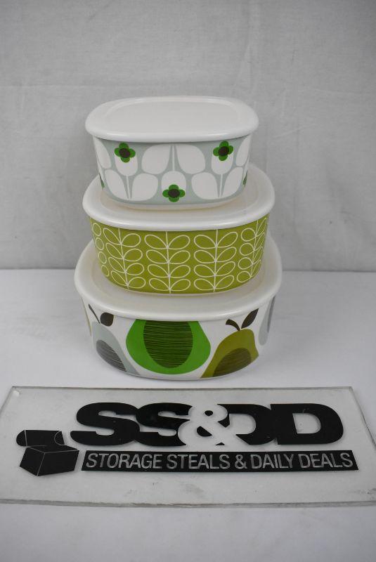 Set of 3 Melamine Bowls with Lids, Modern Art Style Greens & Blues by Orla Kiely