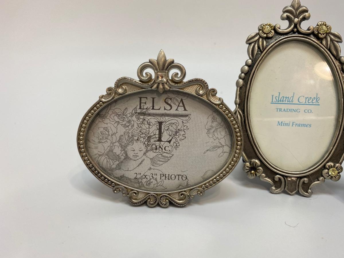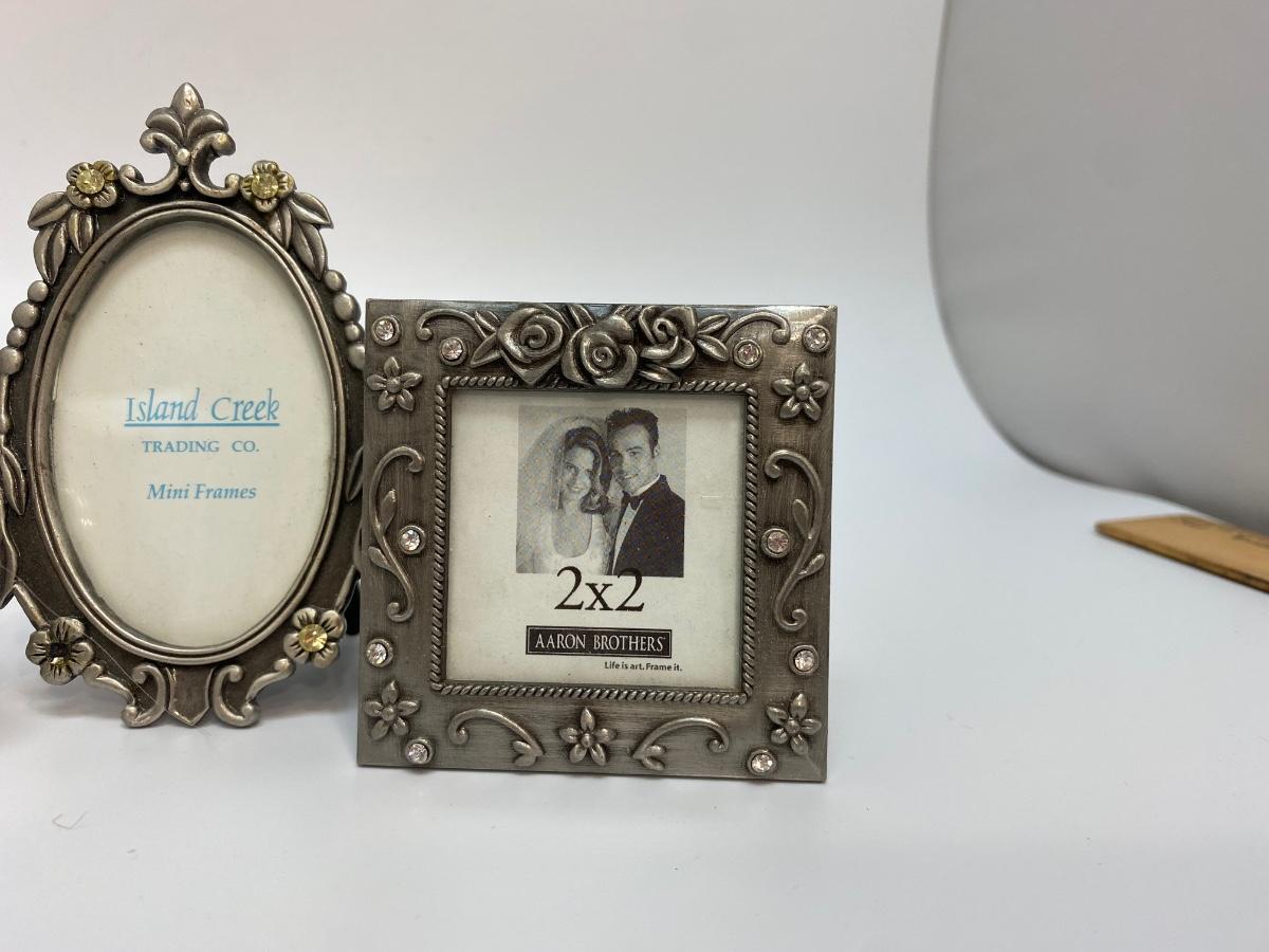 Set of 3 metal picture frames. Each one different. Hold 2x2 or 2x3 photos.