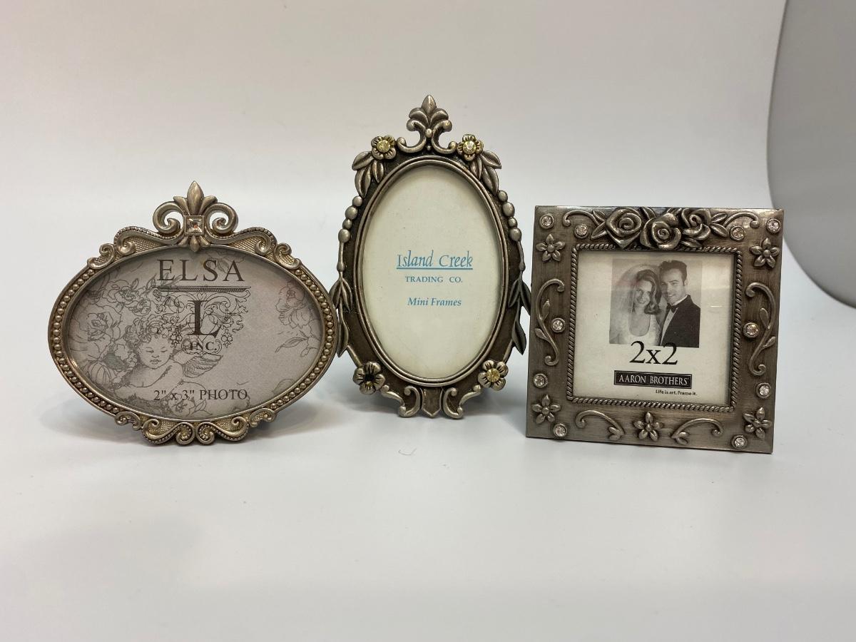 Set of 3 Metal Silver Tone Picture Frames 2x2 2x3
