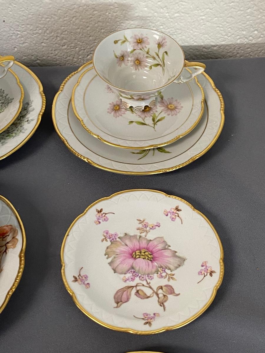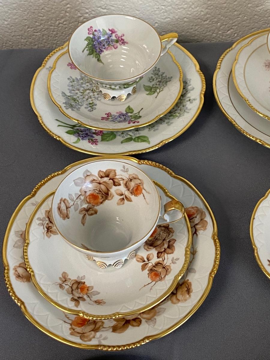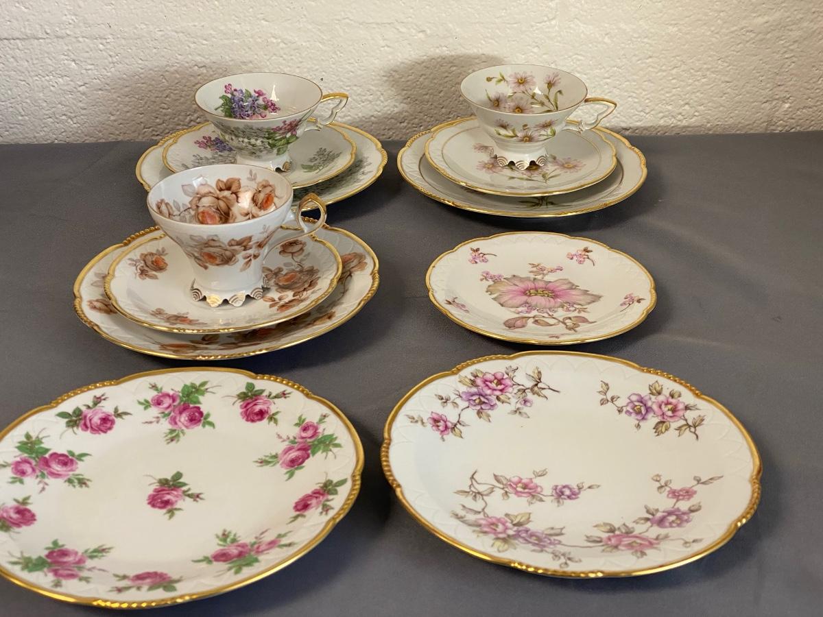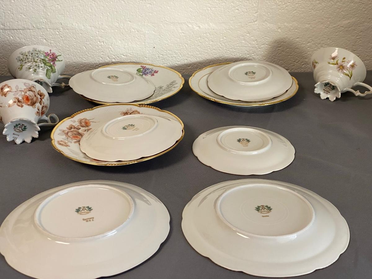 Set of 3 Mitterteich Bavaria Germany Floral China Trio (Cup, Saucer, Plate) and 3 extra plates,