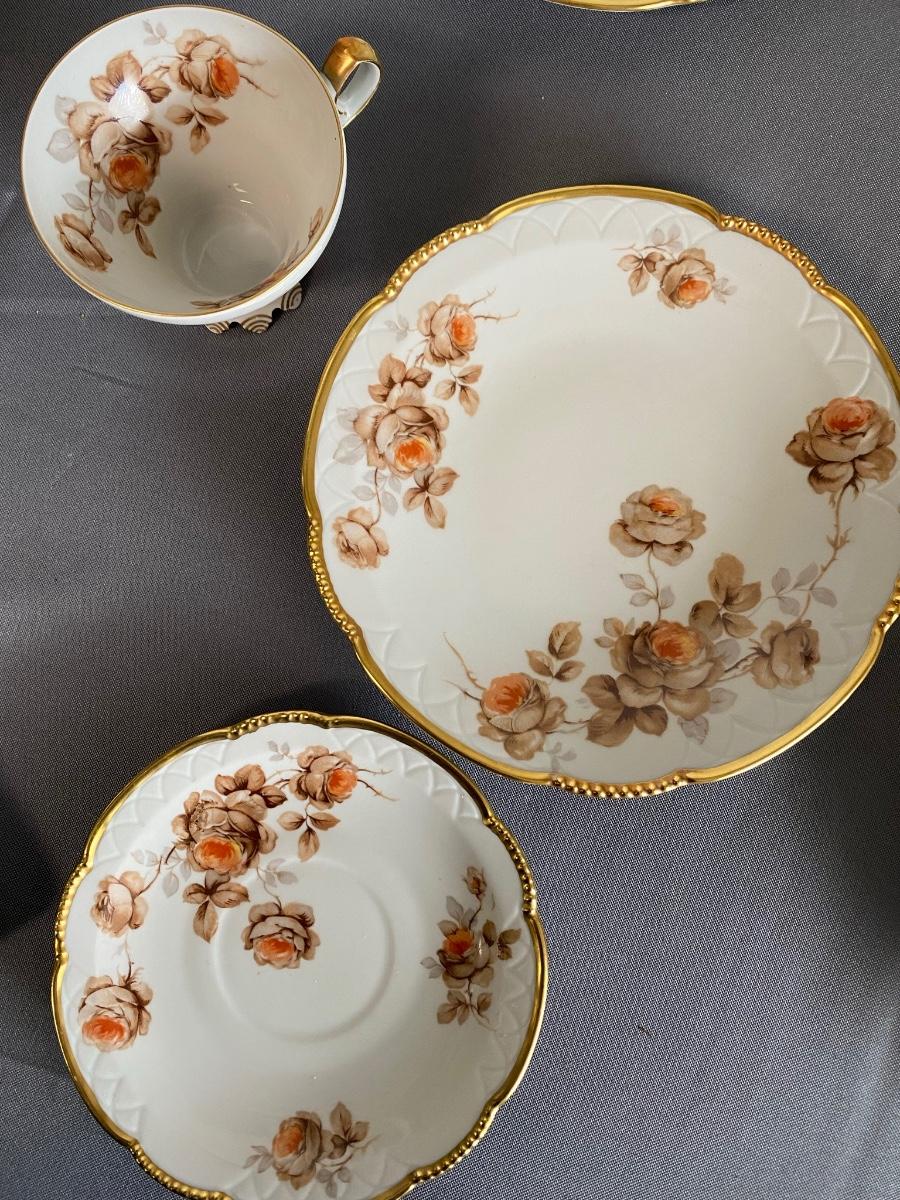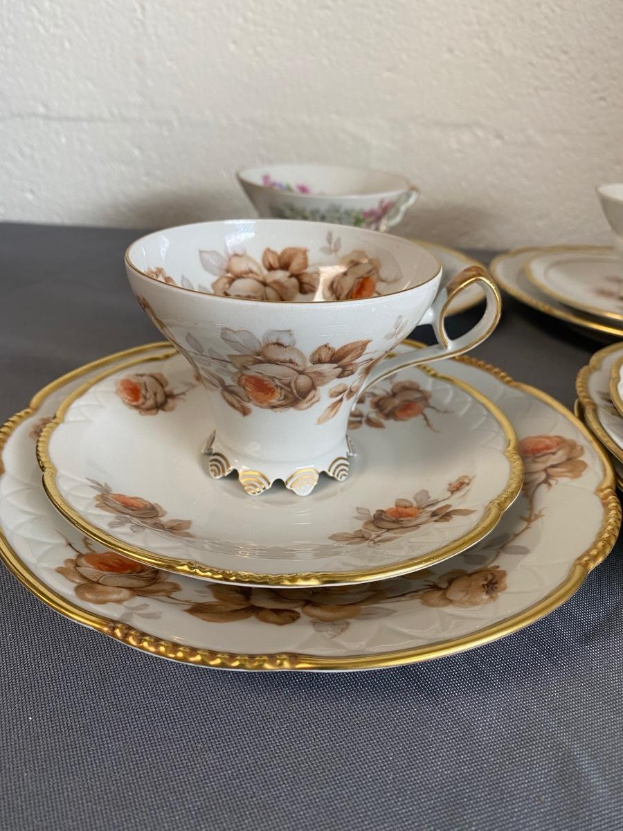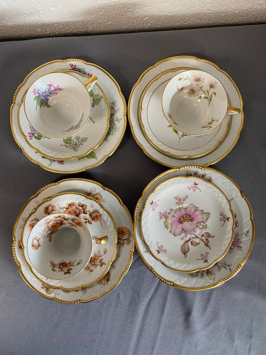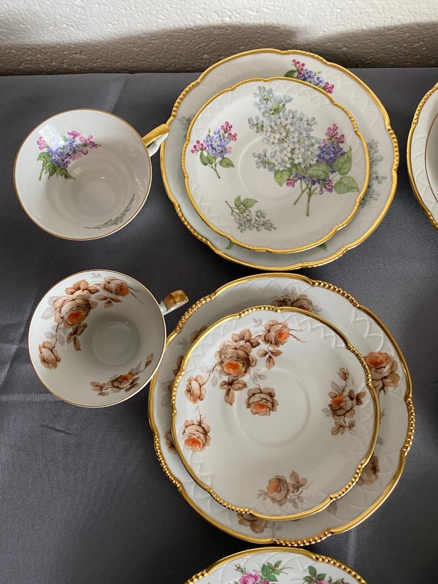 Set of 3 Mitterteich Bavaria Germany Floral China Trio (Cup, Saucer, Plate) and 3 extra plates,