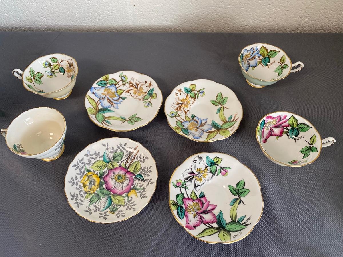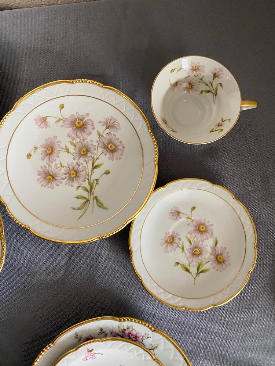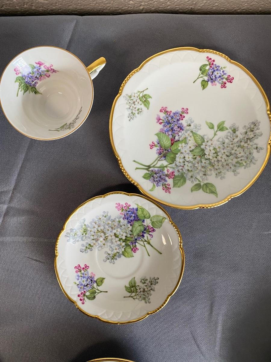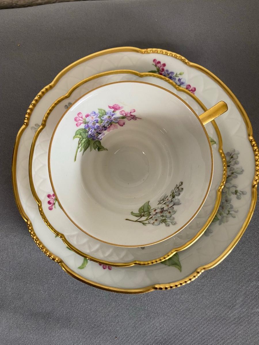Set of 3 Mitterteich Bavaria Germany Floral China Trio (Cup, Saucer, Plate) and 3 extra plates,