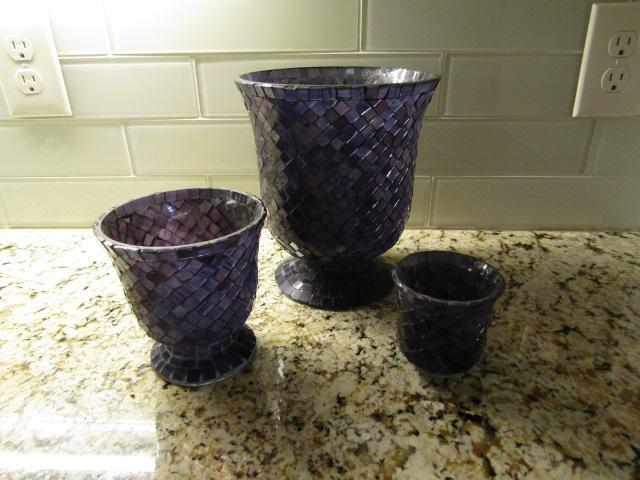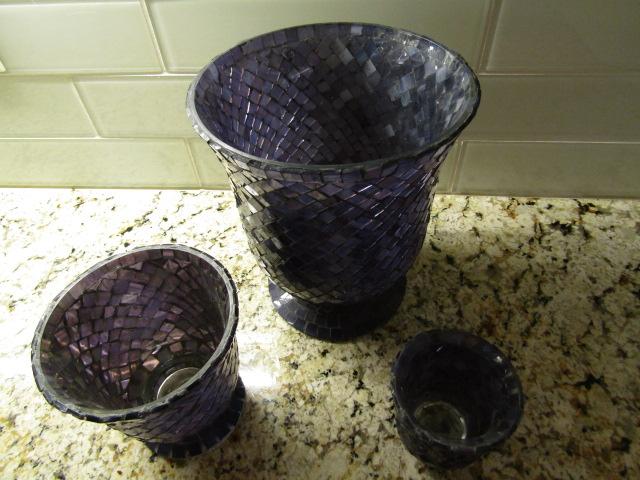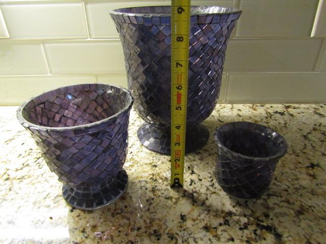 Set of 3 Mosaic Style Glass Tiled Candle Holders