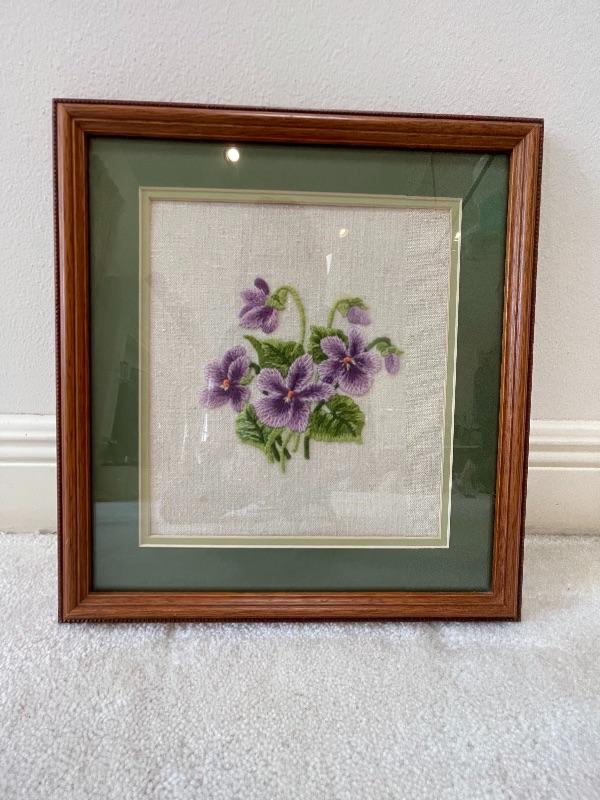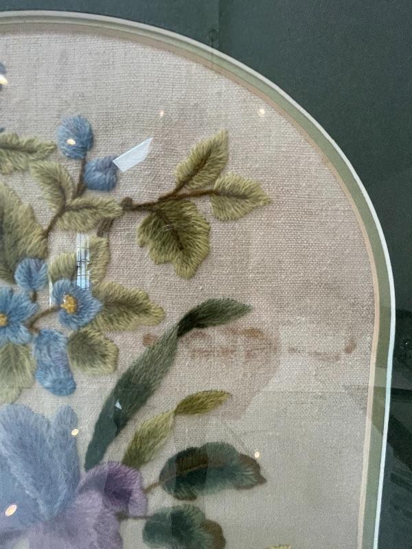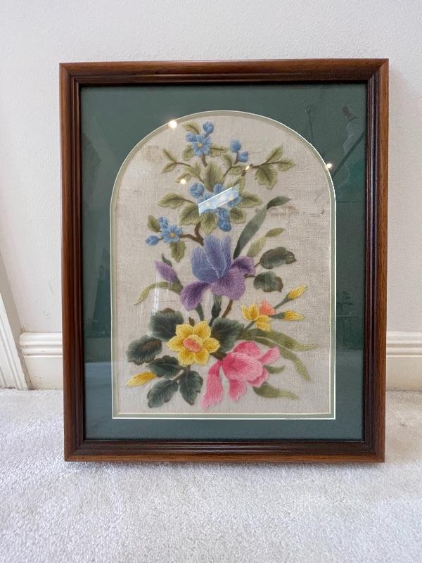 Set of 3 Hand Sewn Needlepoint/Embroidered  Framed Floral Pieces