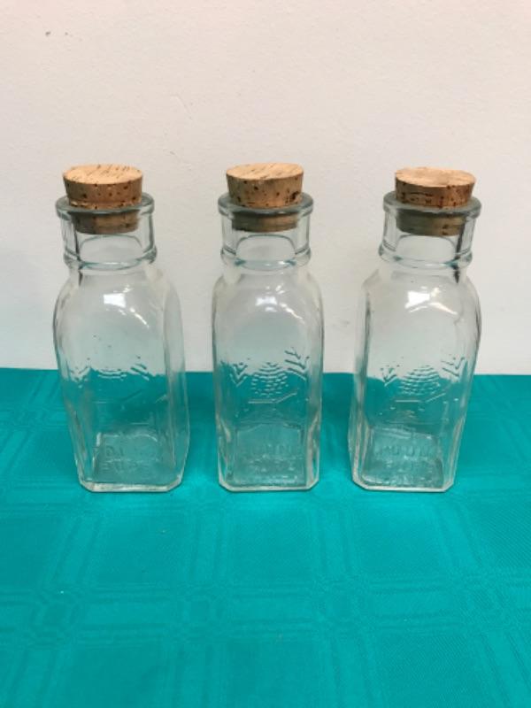 These are made of glass. All three appear to be unused. The corks are in excellent shape and are not dry nor cracking.